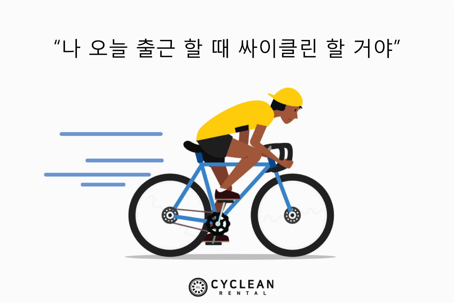 "출근 할 때 싸이클린 할 거야." 이것은 “싸이클린하다”가 어떻게 사용되는지에 대한 좋은 예입니다. 만약 제가 싸이클린의 전기 자전거나 전기 스쿠터를 타고 어디론가 간다면 이 표현을 쓸 수 있습니다. 사람들이 제가 평범한 자전거를 타지 않는다는 것을 알게 하는 재미있는 방법입니다. 여러분도 싸이클린 제품을 사용하고 있나요? 여러분이 출근 할 때 싸이클린 제품을 이용하여 직장 동료들한테 “나 오늘 싸이클린했어”라고 말한다면 그 사람들은 호기심이 생길 것입니다. 그리고 나서 그들은 "너 방금 뭐라고 했니?"라고 물어볼 것입니다. 여러분이 배출량이 없는 싸이클린의 자전거나 스쿠터를 탄다고 설명하면 사람들은 여러분이 친환경 제품을 사용하고 있다는 것을 알게 될 거예요!