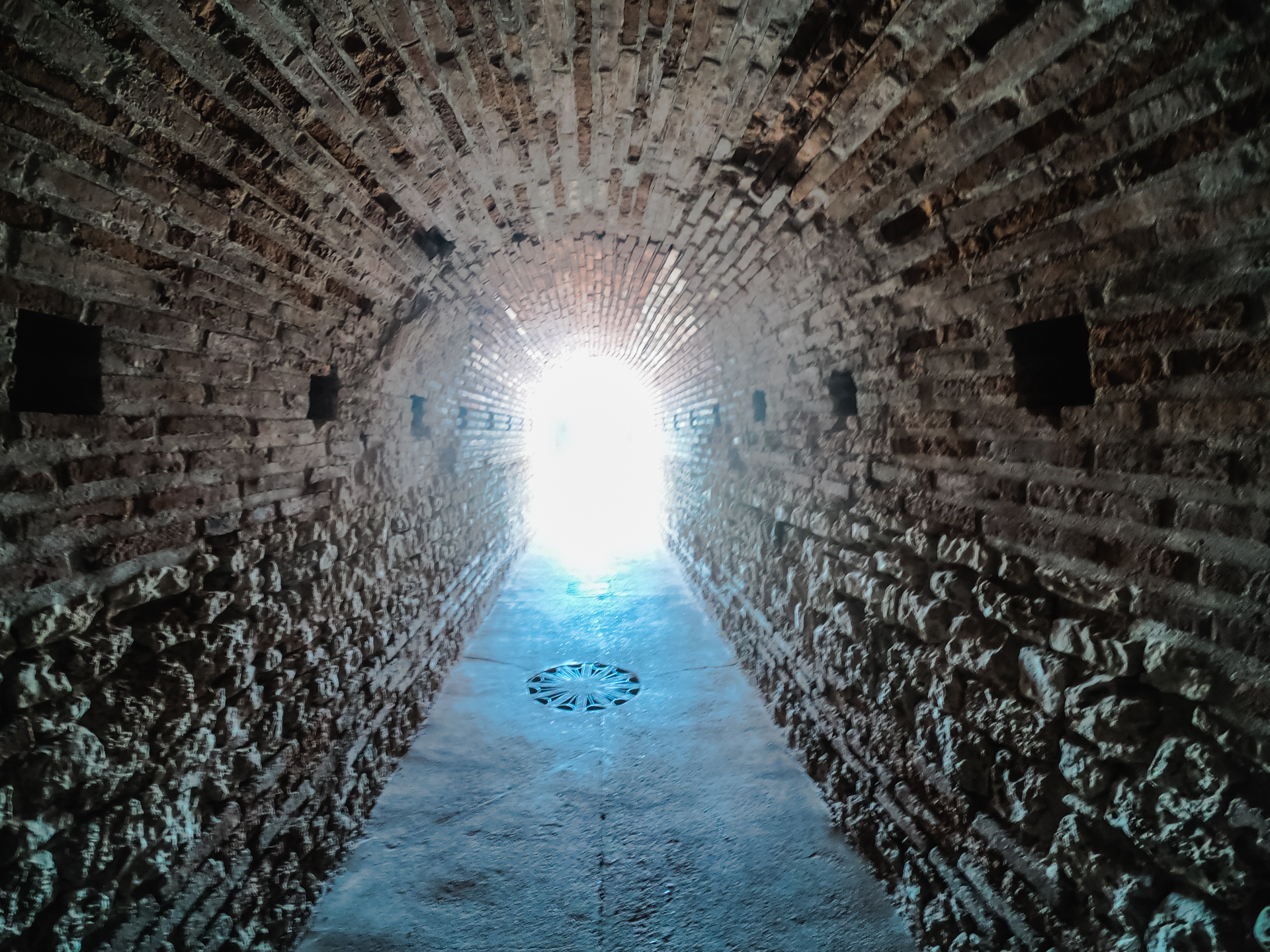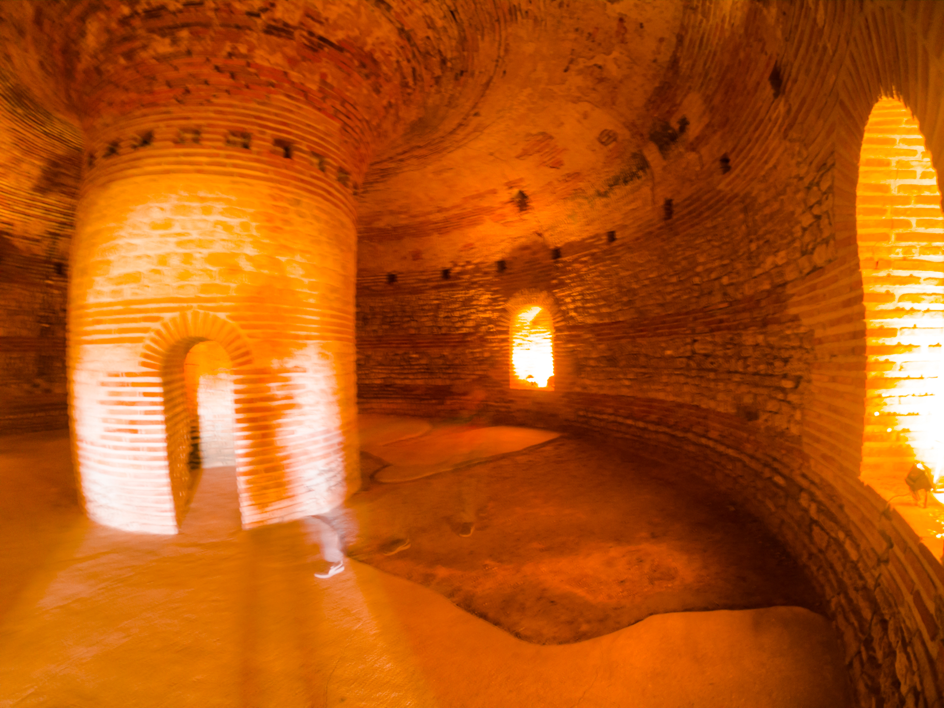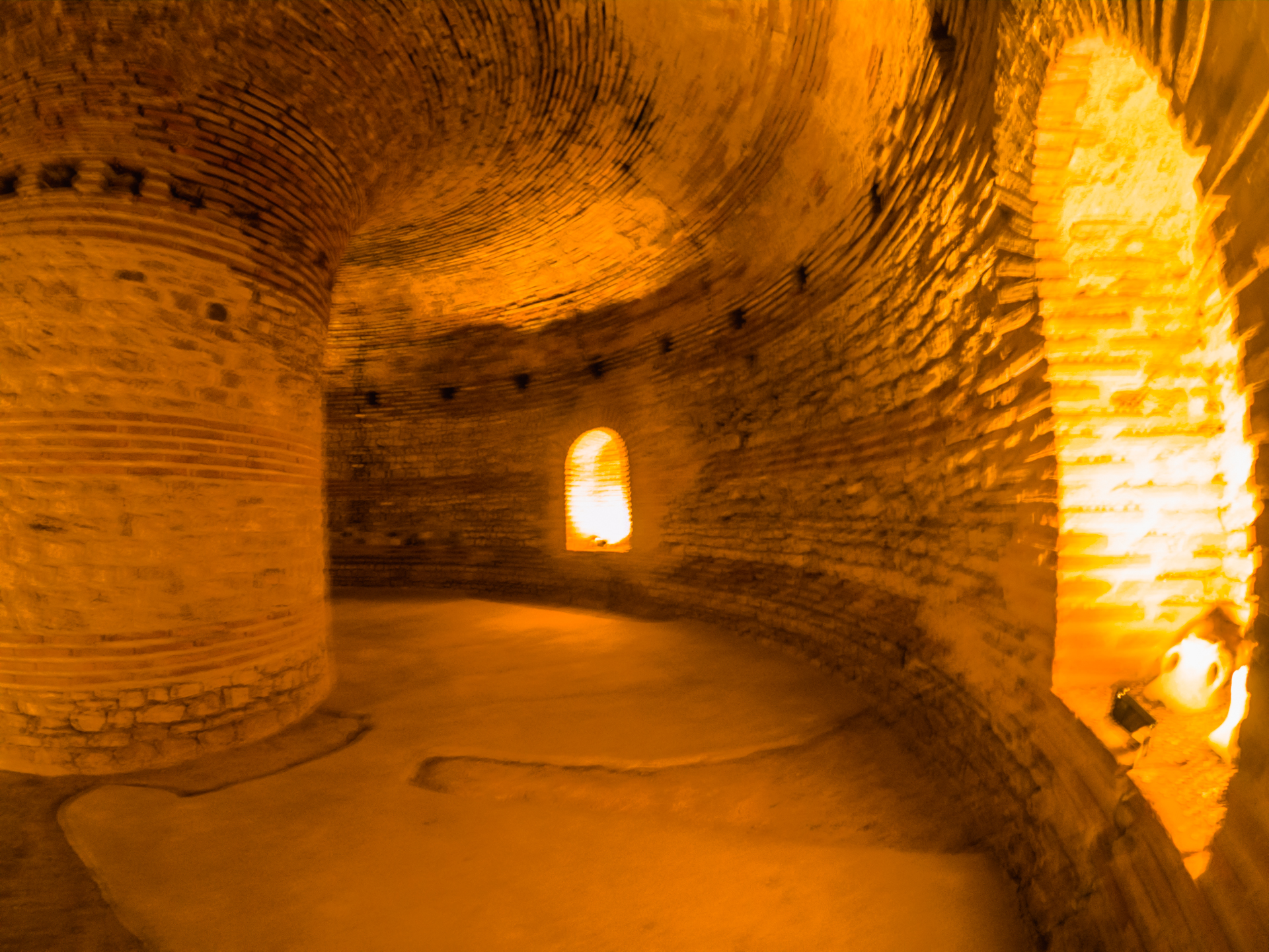 The corridor and the chamber are covered in bricks.