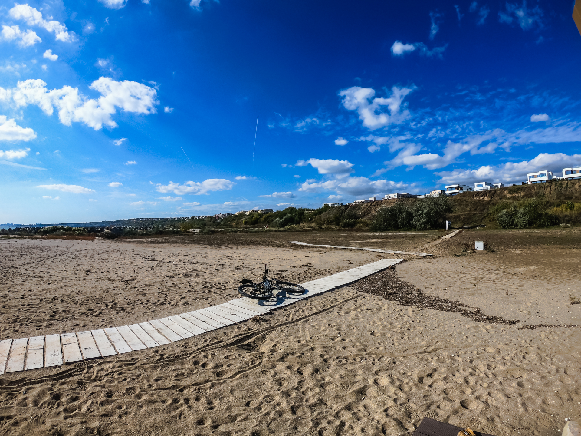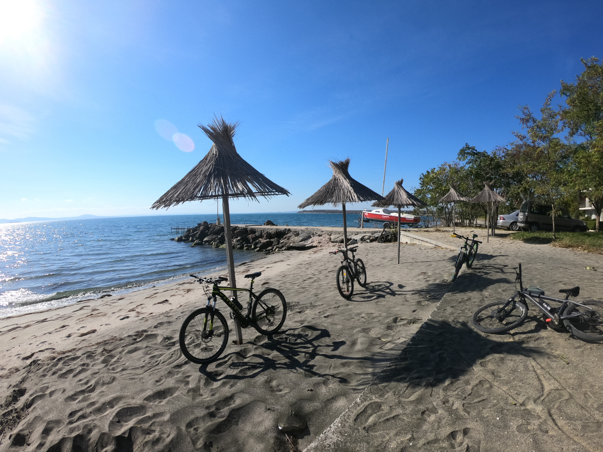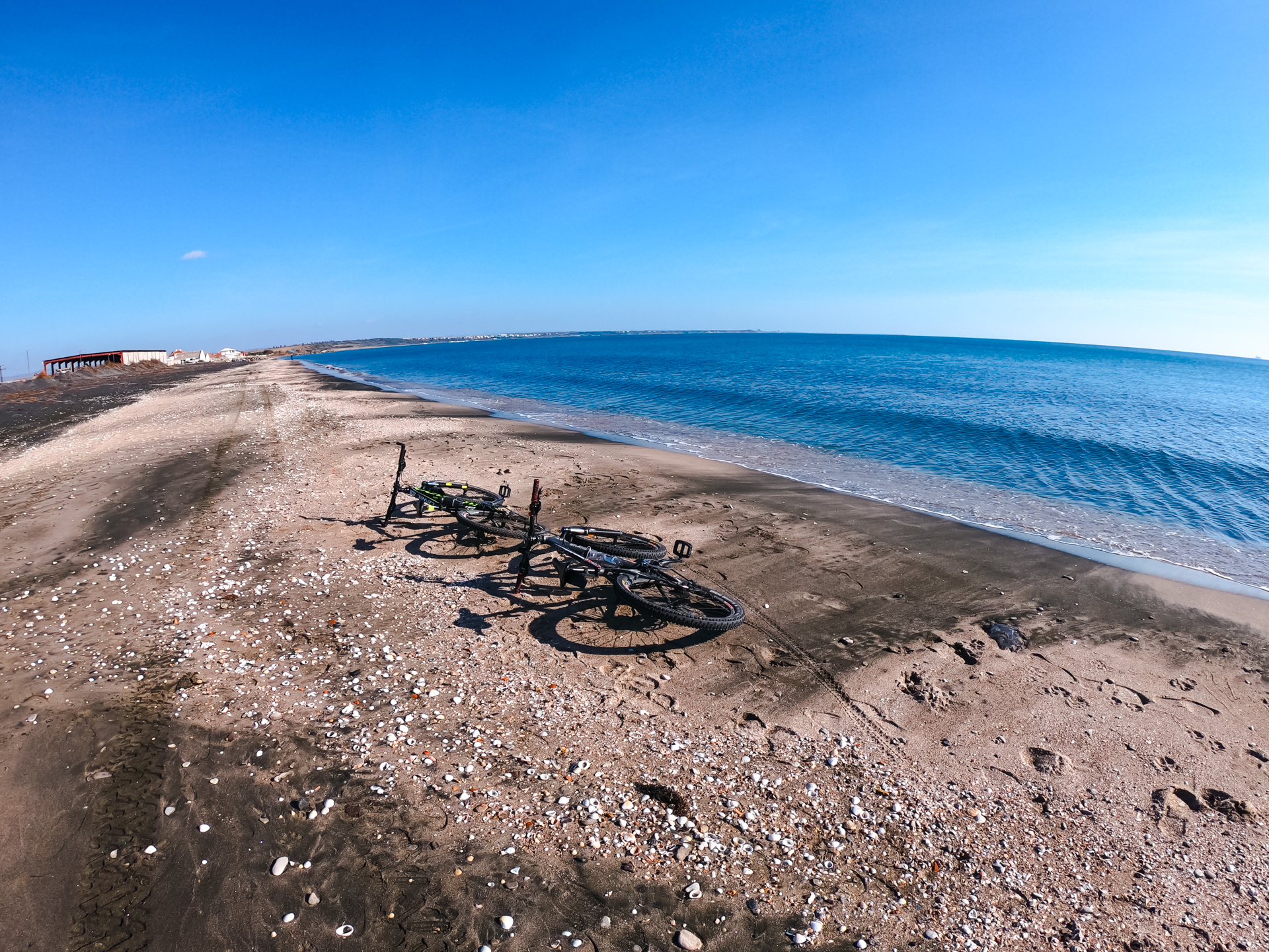 We stopped near Burgas Luga to photograph our bikes on the beach.