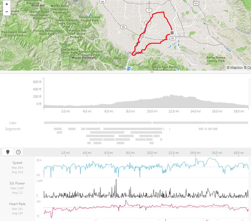The ride was almost 19 miles and a fairly flat 400 ft of climbing.