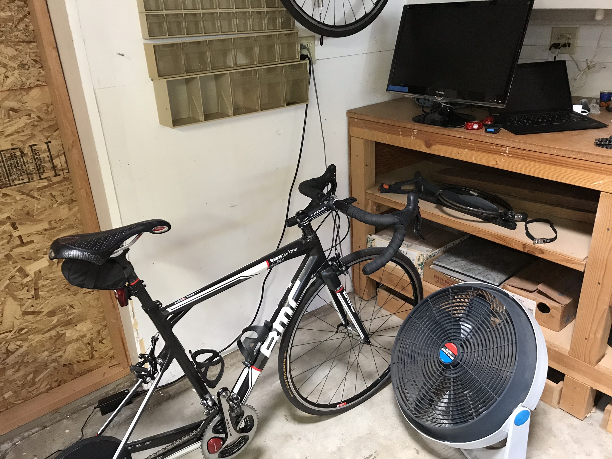 With the new job I am squeezing rides in super early, which means indoor training. So, I've re-built the pain cave with some new tech and an old laptop/monitor so I can stream races on youtube while I train.
