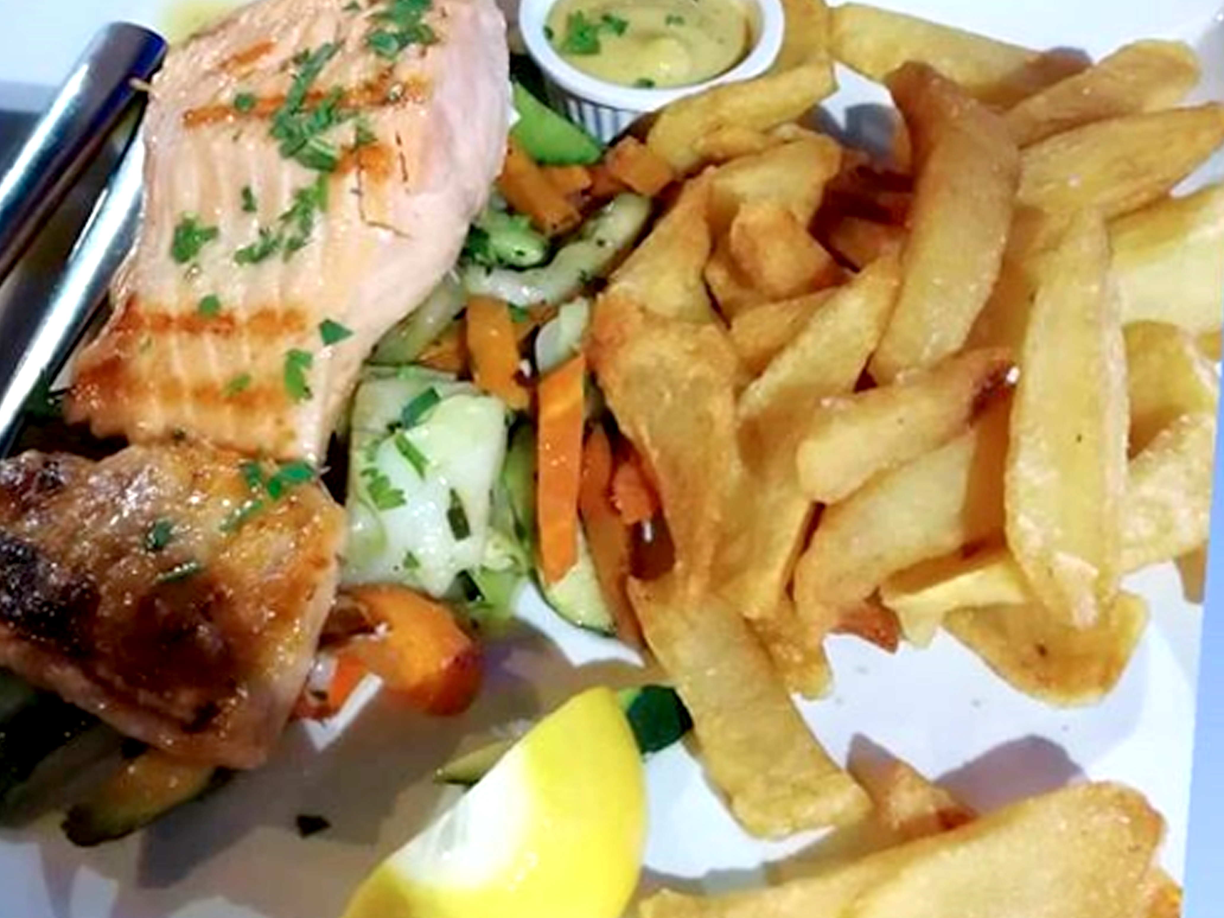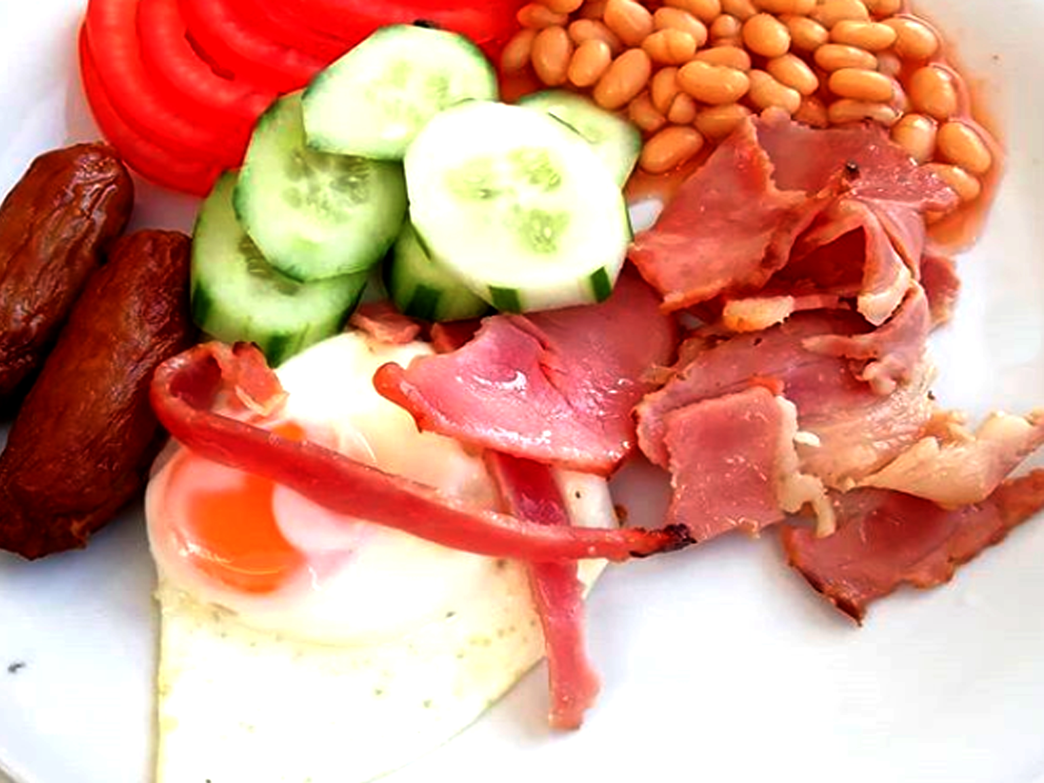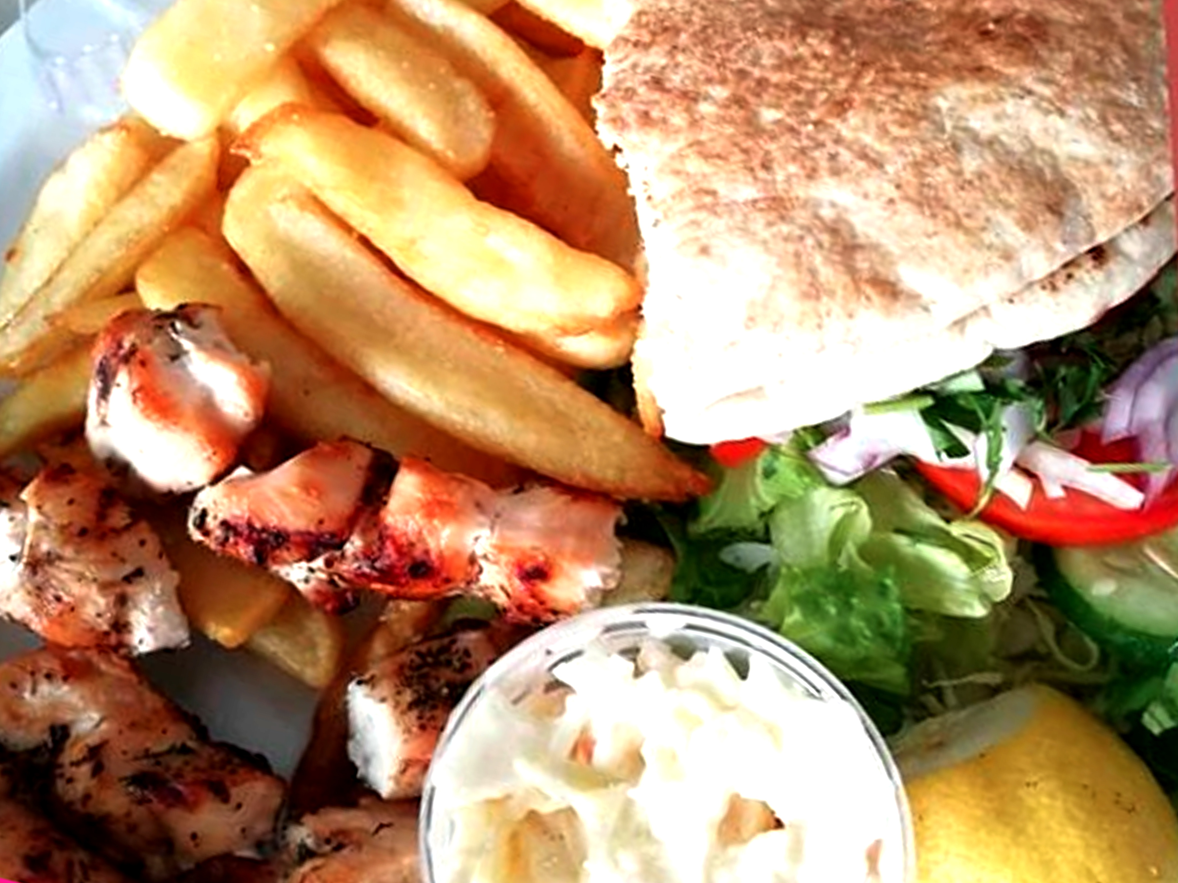Chicken Kebab with bread and french fry also had little salad taste was not bad. Grill Fish with French fry and tartar sauce also salad was best for me. Greek people like too much lemon, Very common talk i hear Greek people like to have lemon even in the lemon so almost every where they use lemon. We know lemon is okay when having fish, good to wash hand with hot water with lemon so smell will go away. I seen in my own eyes, every house has Lemon and orange or Malta fruit tree. third picture been, tomato, cucumber, egg, and bacon and sausages I had in my breakfast. Last picture dessert after Lunch I had.