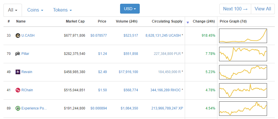 Last week I posted on a top 5 performer in the top 100 Revain(R) . The markets were not doing so well but this one was outperforming the best. While it did see a pull back from the carnage of last week it is now seeing a resurgence.