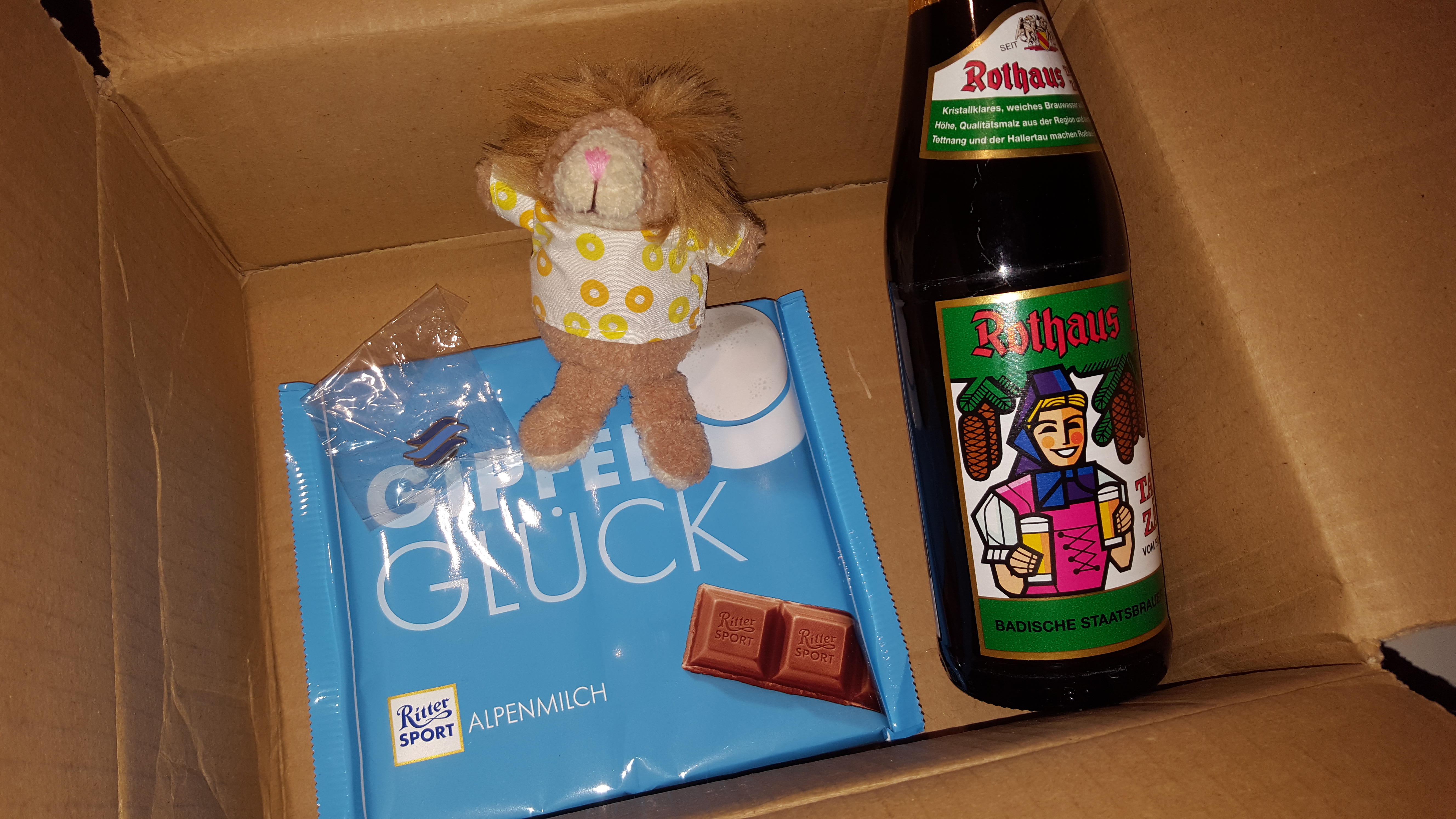 Vielen lieben Dank Jean-Pierre für die tollen Kleinigkeiten, ich freue mich mega darüber! Schoki geht sowieso immer, der kleine Löwe ist auch sehr niedlich (passt auch noch zu meinem Sternzeichen lach) und ... na ja ... vom Bier werde ich zumindest probieren - versprochen! Bier ist nicht so meins (konntest du ja aber auch nicht wissen), aber mein Papa wird sich ganz sicher freuen und dann probiere ich auf jeden Fall - und vielleicht nehme ich es ihm dann ja doch wieder weg?? :-P Alles auf jeden Fall auch echt toll ausgesucht! So macht das Spaß! Ich denke, wir lesen uns nun sicher auch öfter mal hier auf der Chain :)