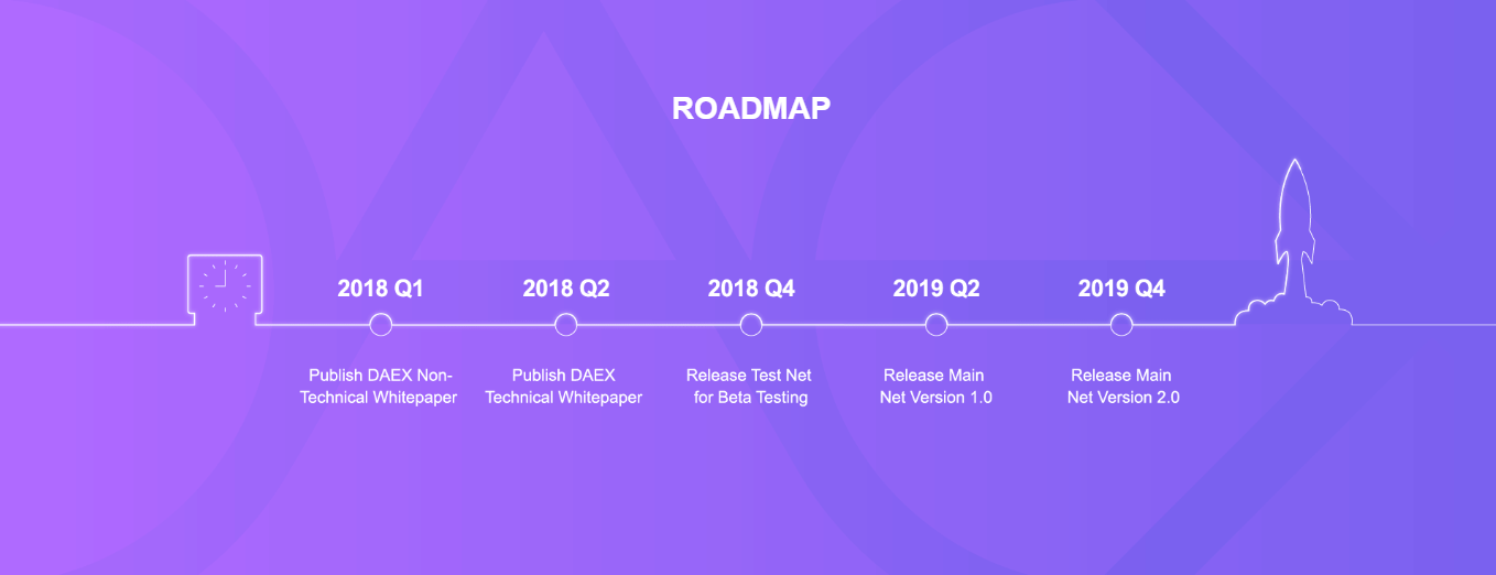 RoadMap DAEX berguna untuk memperlihatkan kegiatan yang akan dilakukan oleh proyek DAEX. Sebentar lagi Beta Test Net akan dilakukan pada Q4 yaitu kisaran bulan September - Desember 2018