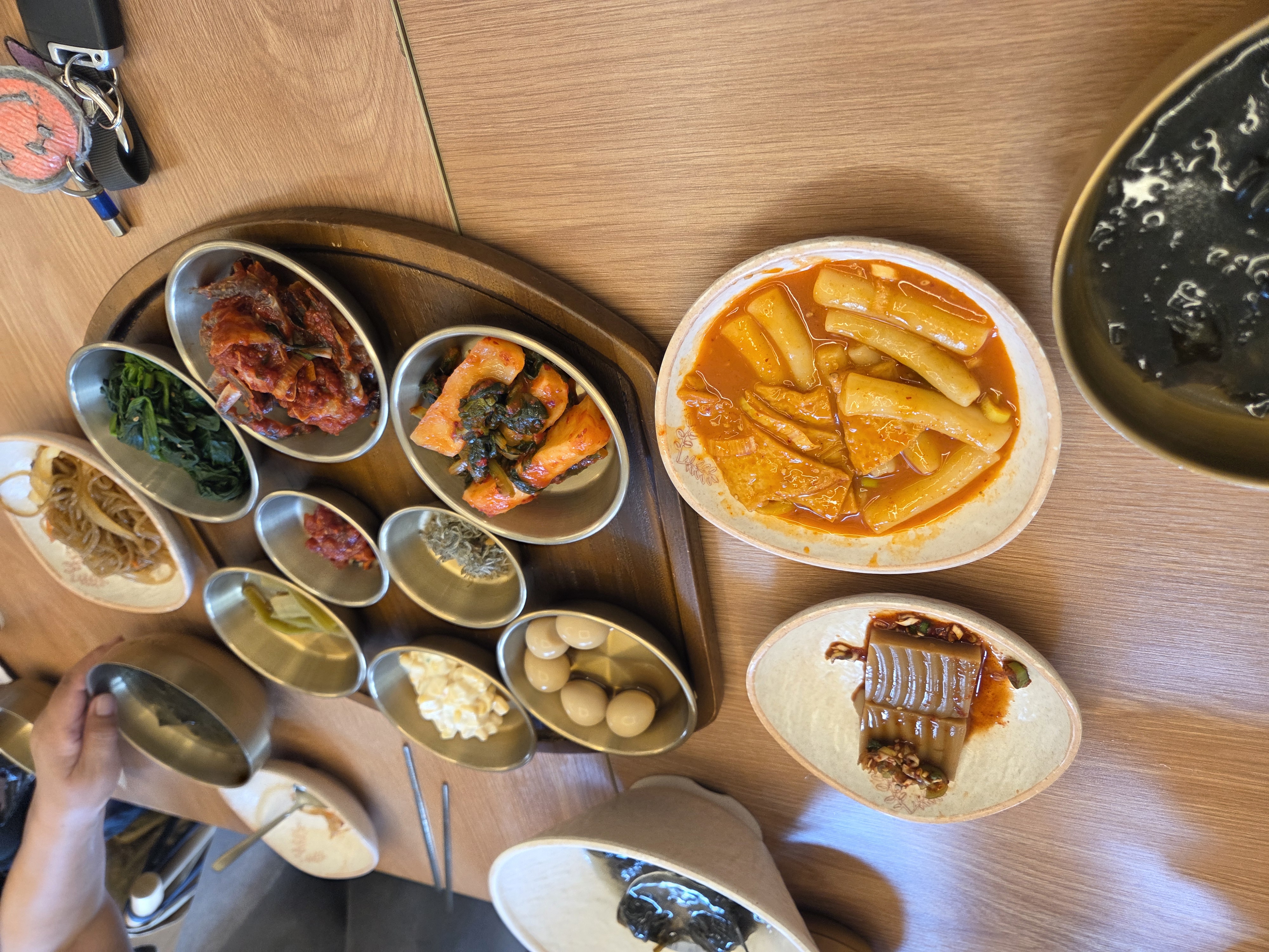기본찬에 묵무침.잡채.떡볶이가 셀프입니다