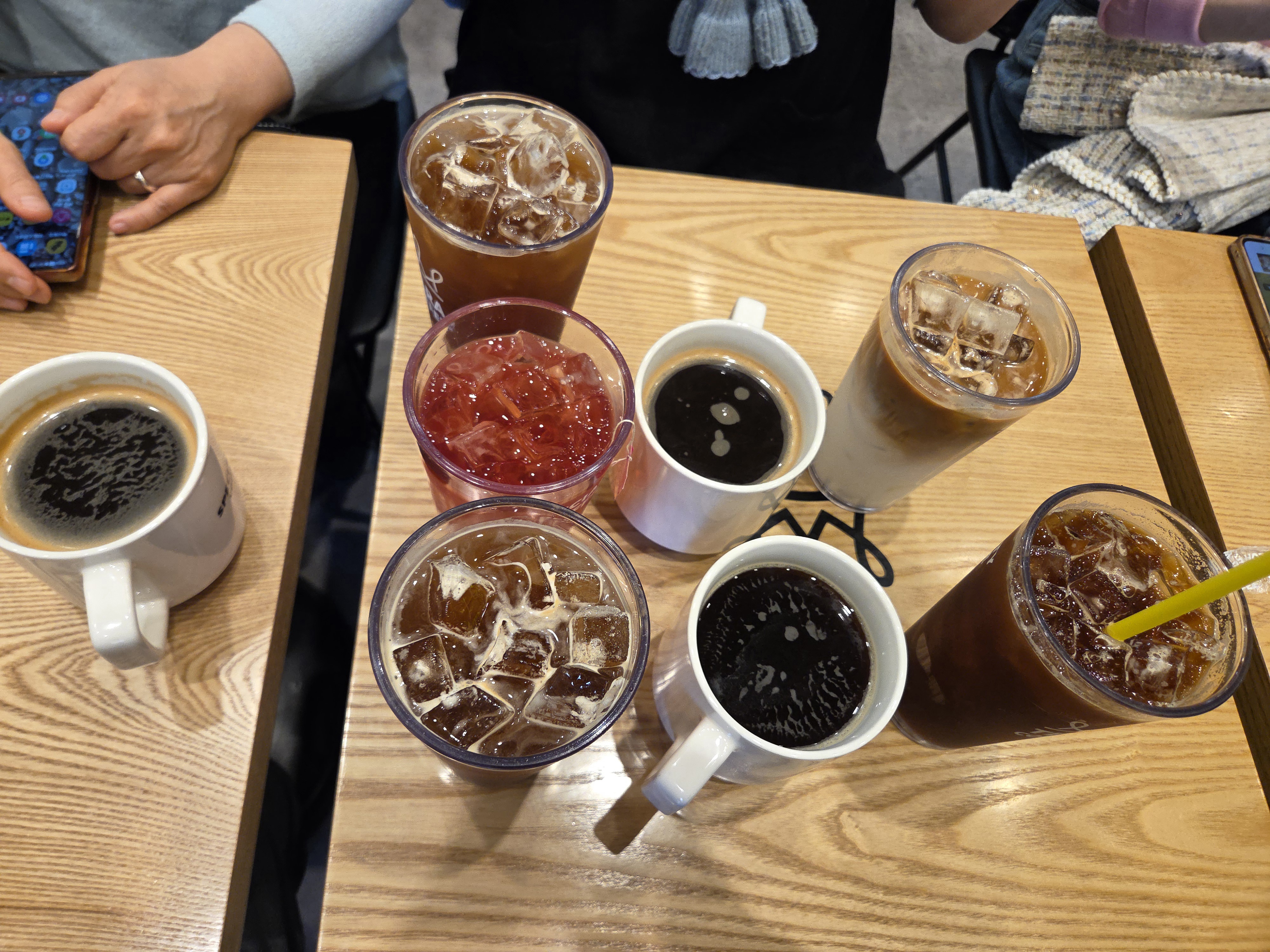 저가 커피에 공간 넓은 곳이 바로 아래층에 있어 자리를 잡았어요