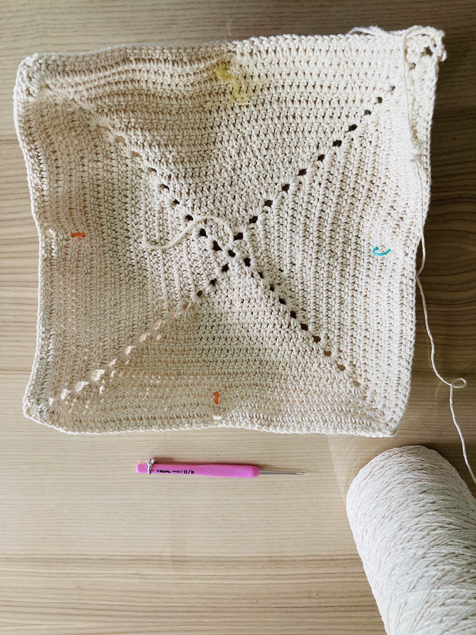 전에 떴던 네트 가방 도면을 잃어 버려 유튜브에서 가장 비슷한 가방 영상을 찾아 따라 하며 가방을 뜨기 시작했다