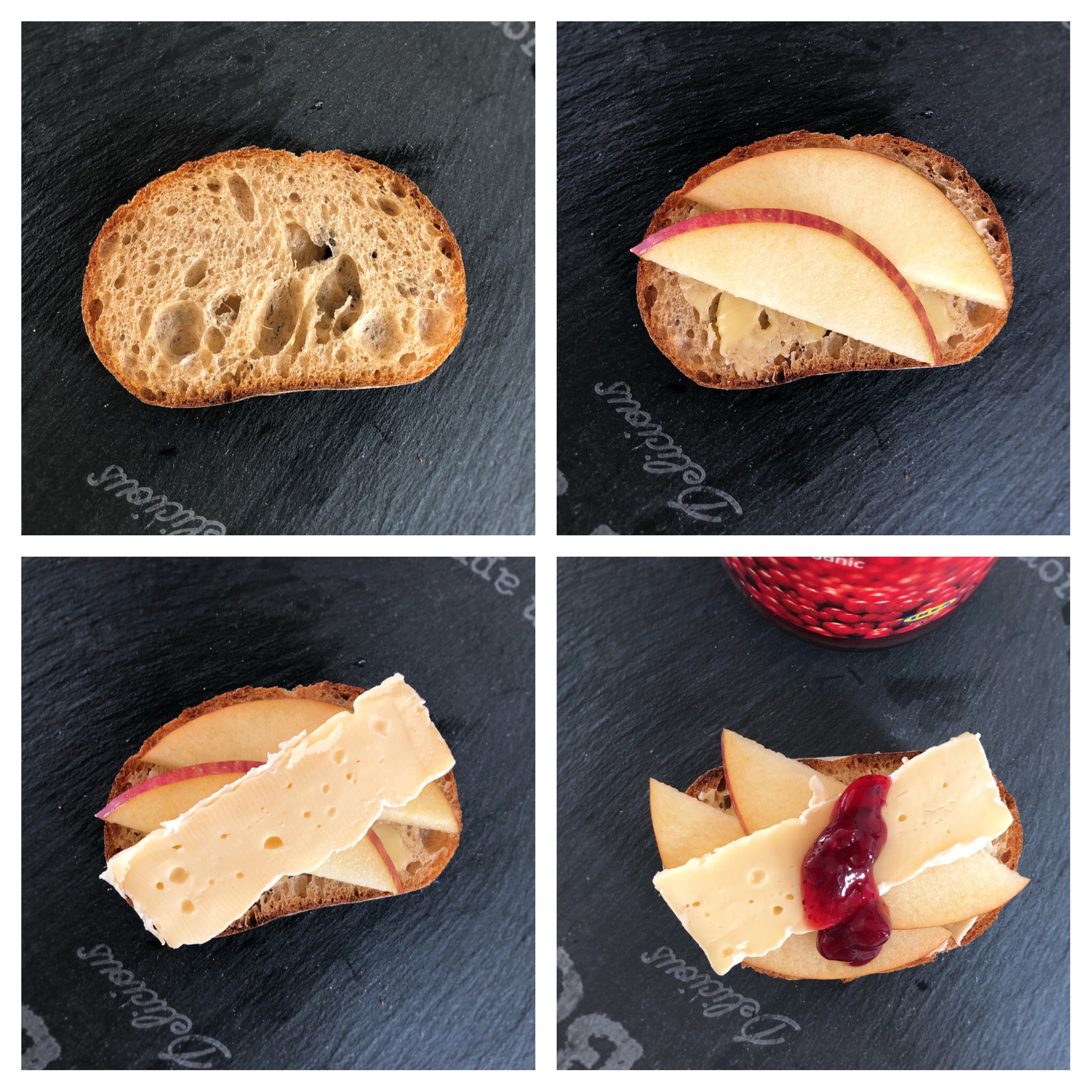 특히 치즈가 맛있음. 사과맛이 더 강했으면 좋겠음. 버터 양을 작게 하고 잼에 사과잼을 섞어 사용하면 좋겠음. 크기는 한입에 들어가게 작게 할 것!