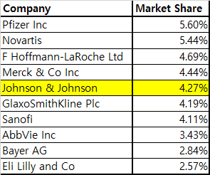 의외로 4~5% 대에 조밀하게 몰려있다. Sanofi 까지 합해봐야 32.74% 정도 나온다.
