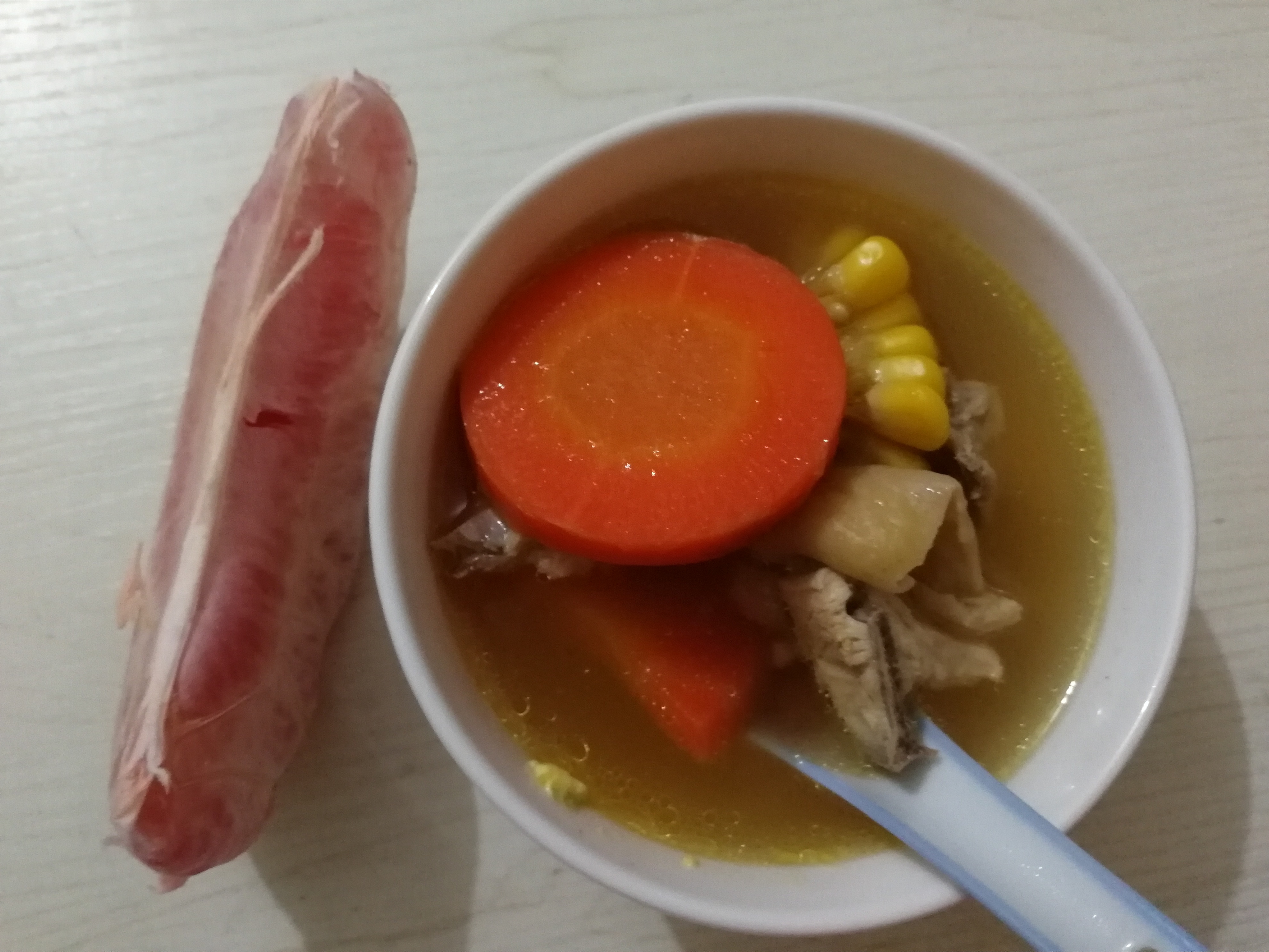 今天做的是胡萝卜玉米炖鸡汤!我还加了红枣枸杞,可以补血,看起来颜色也很漂亮,吃起来也很鲜甜哦😊