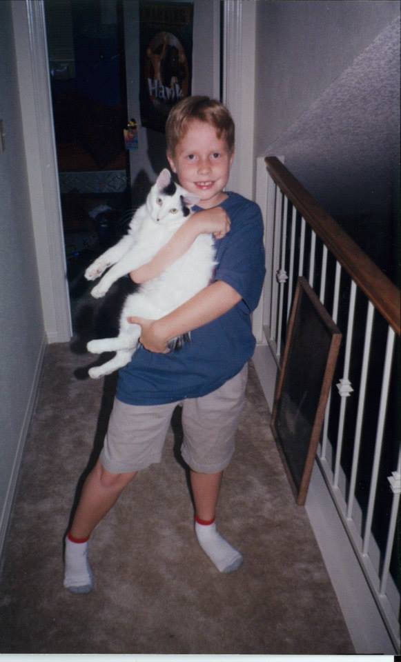 Ben was adopted and he was the sweetest white fluffy cat. He was very sick when we got him, and he had to have medicine every day, but he got healthy and lived a long happy life.