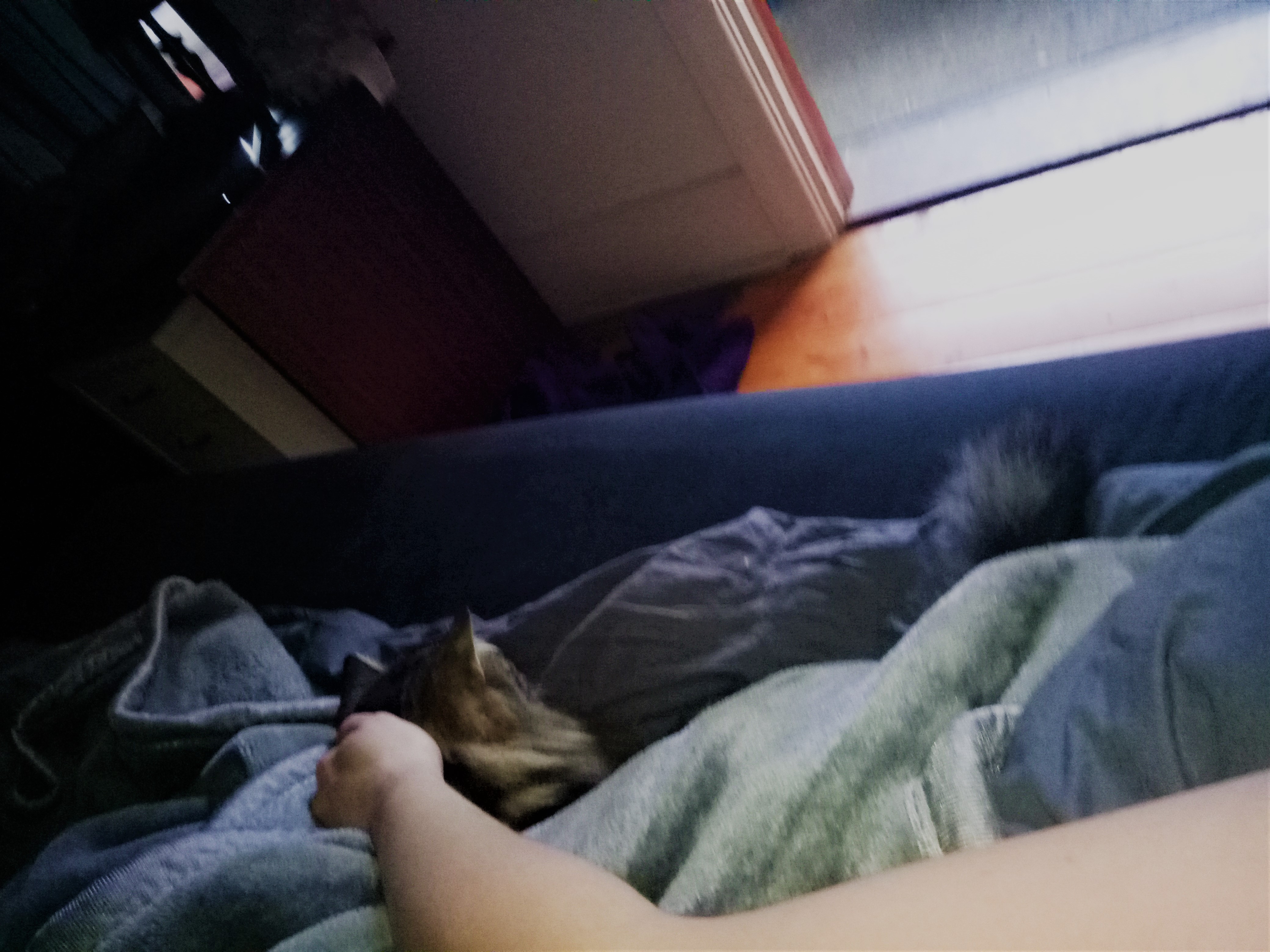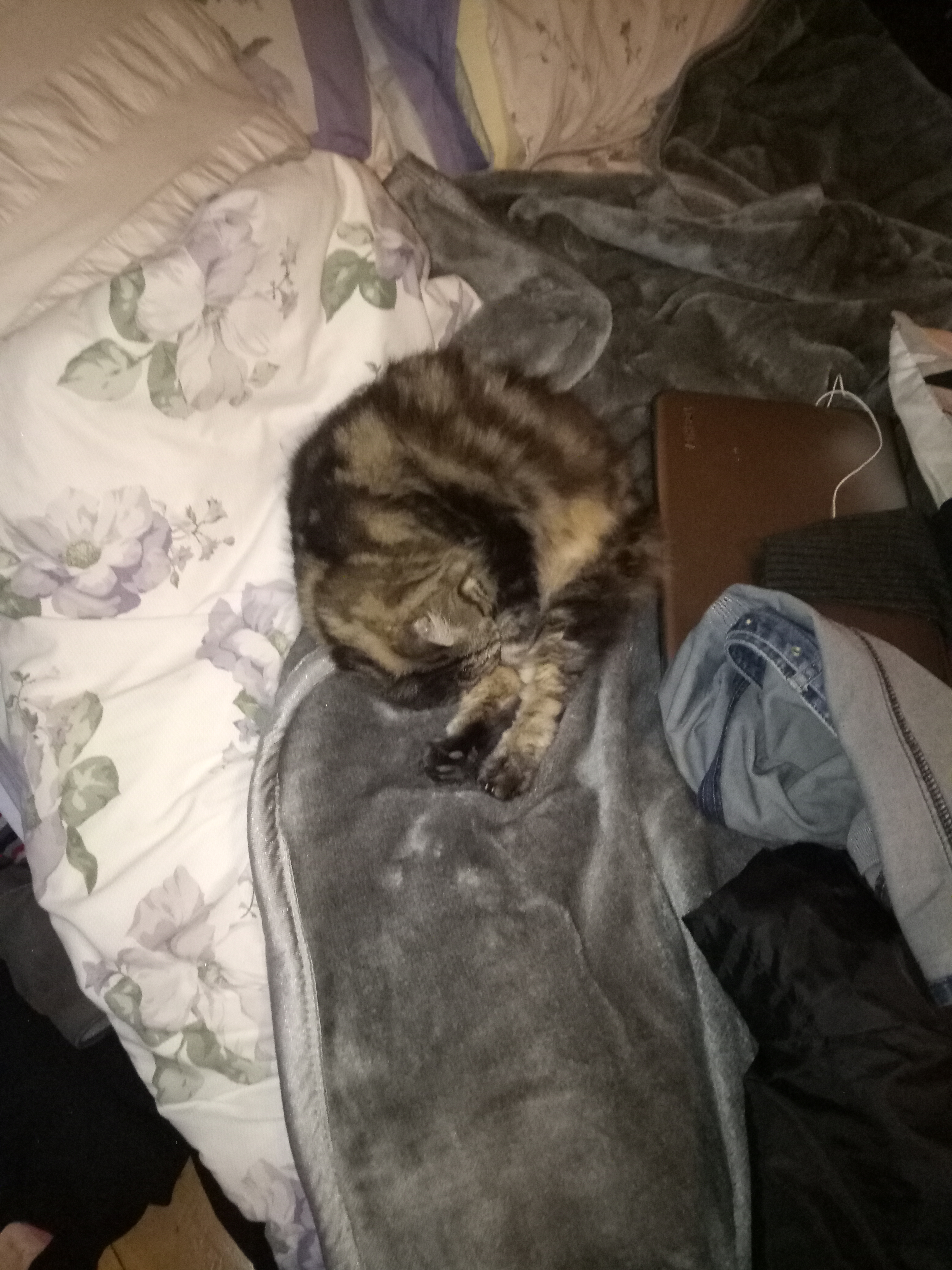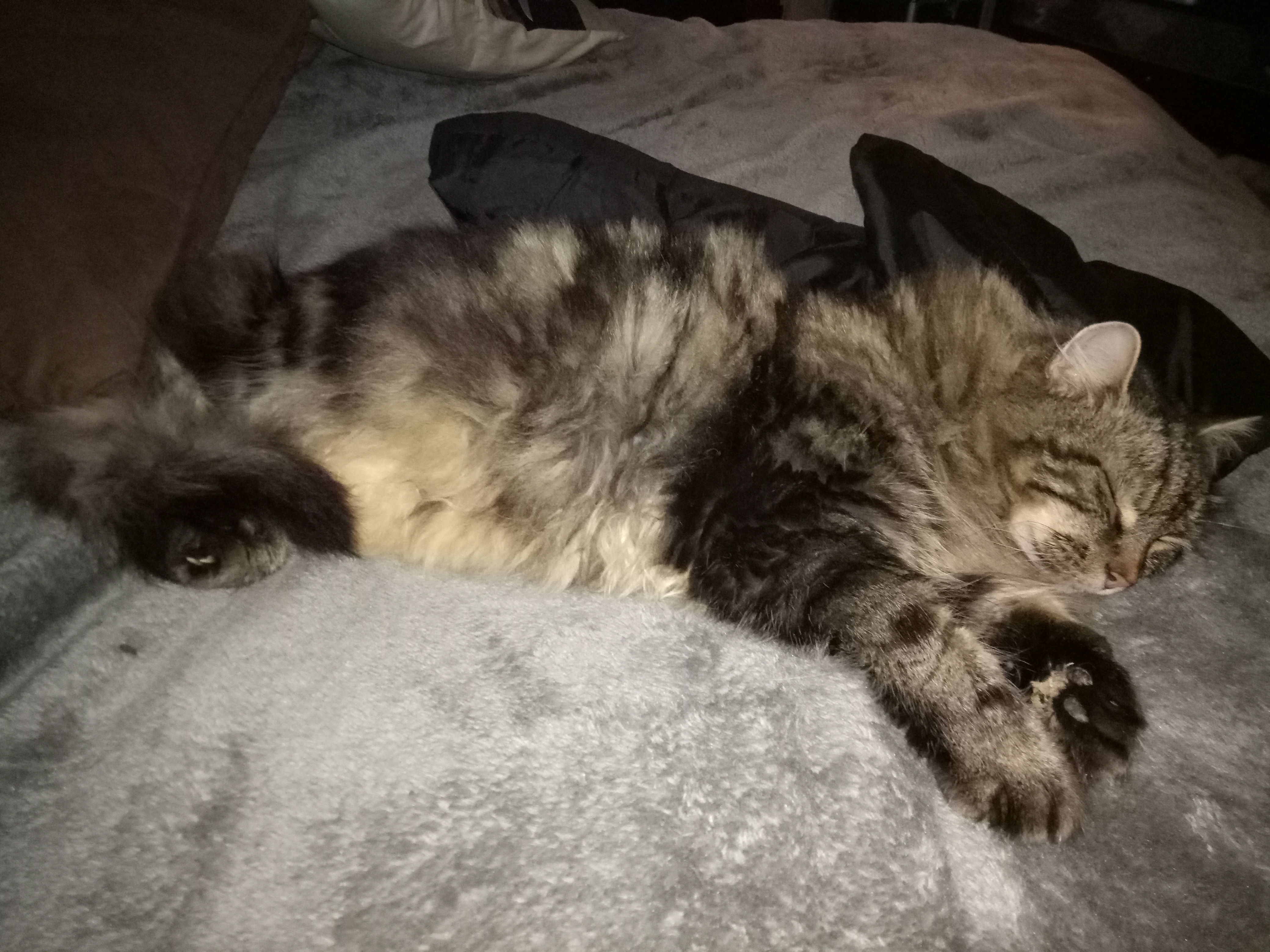 He decided my bed was definitely the spot to be, regardless of other items on the bed, he just kept to himself and focussed on his naps.