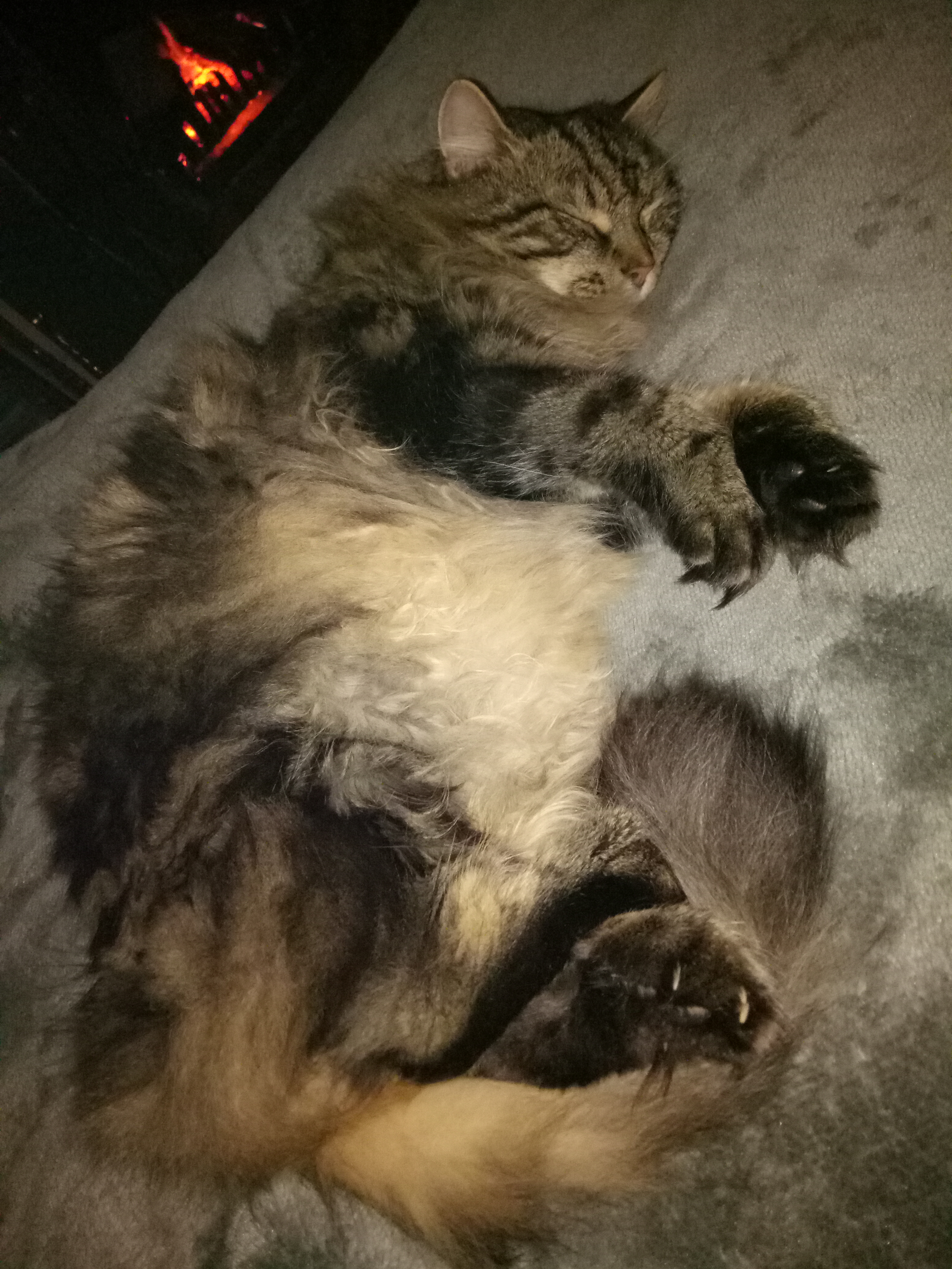 Awww, I love this: when you wake up in the morning to find someone has nestled themselves in amongst you and your blankets - and that kangaroo pose with the long, fabulous claws -