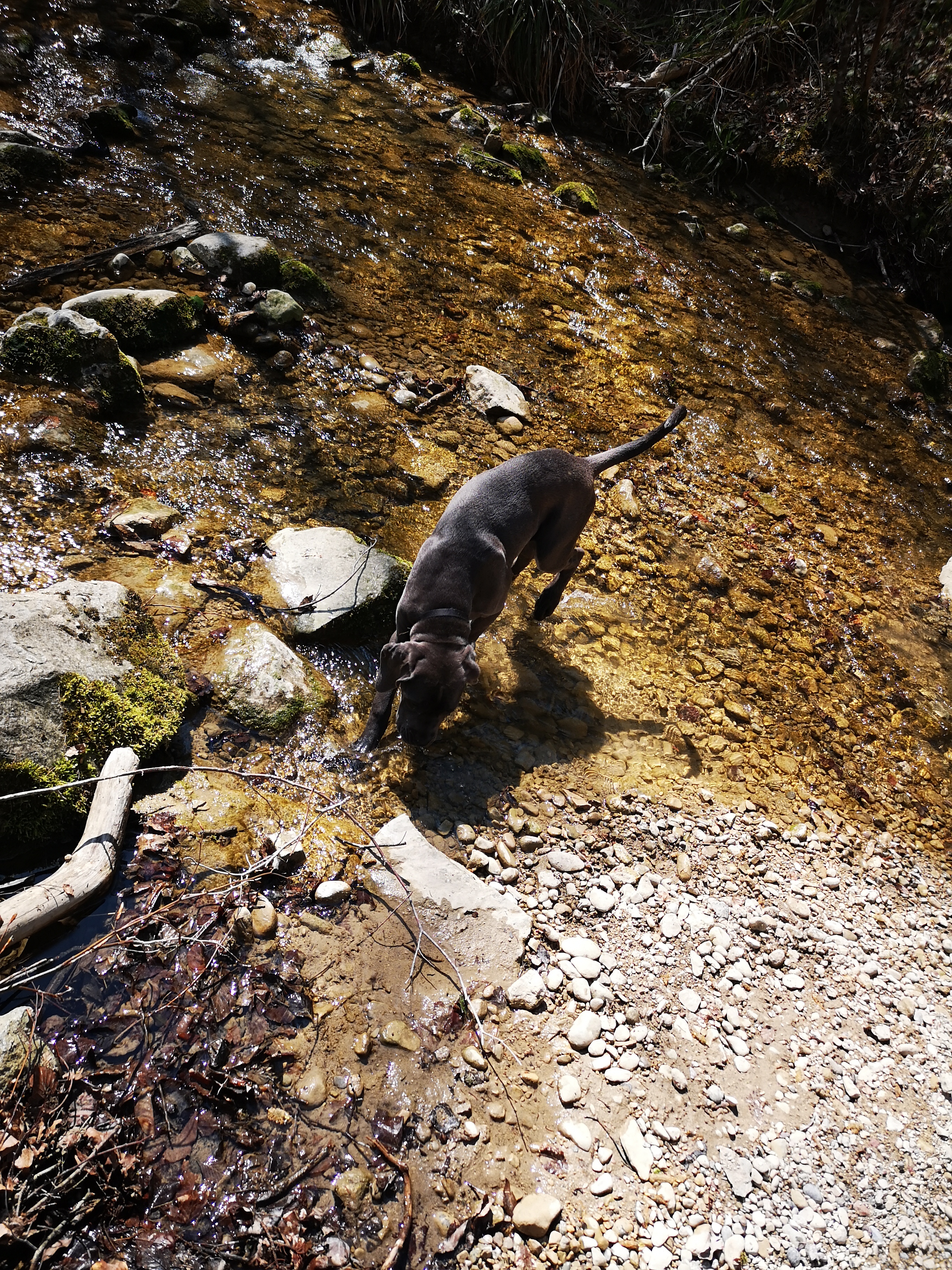 On Friday she did her first walk in a little river. Before it was always too cold for, so she only drank a bit standing at the dry side of the water. Soon we might train to swim a bit.