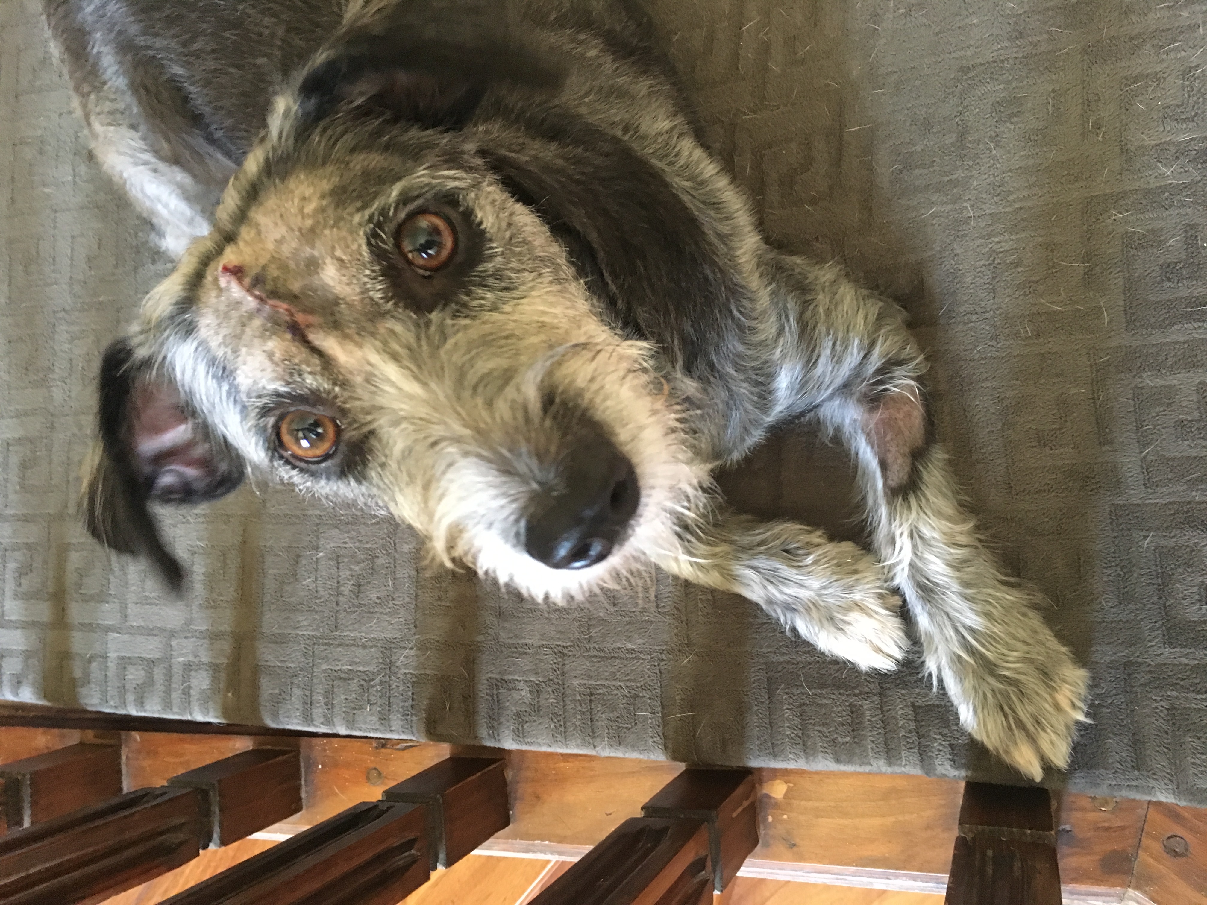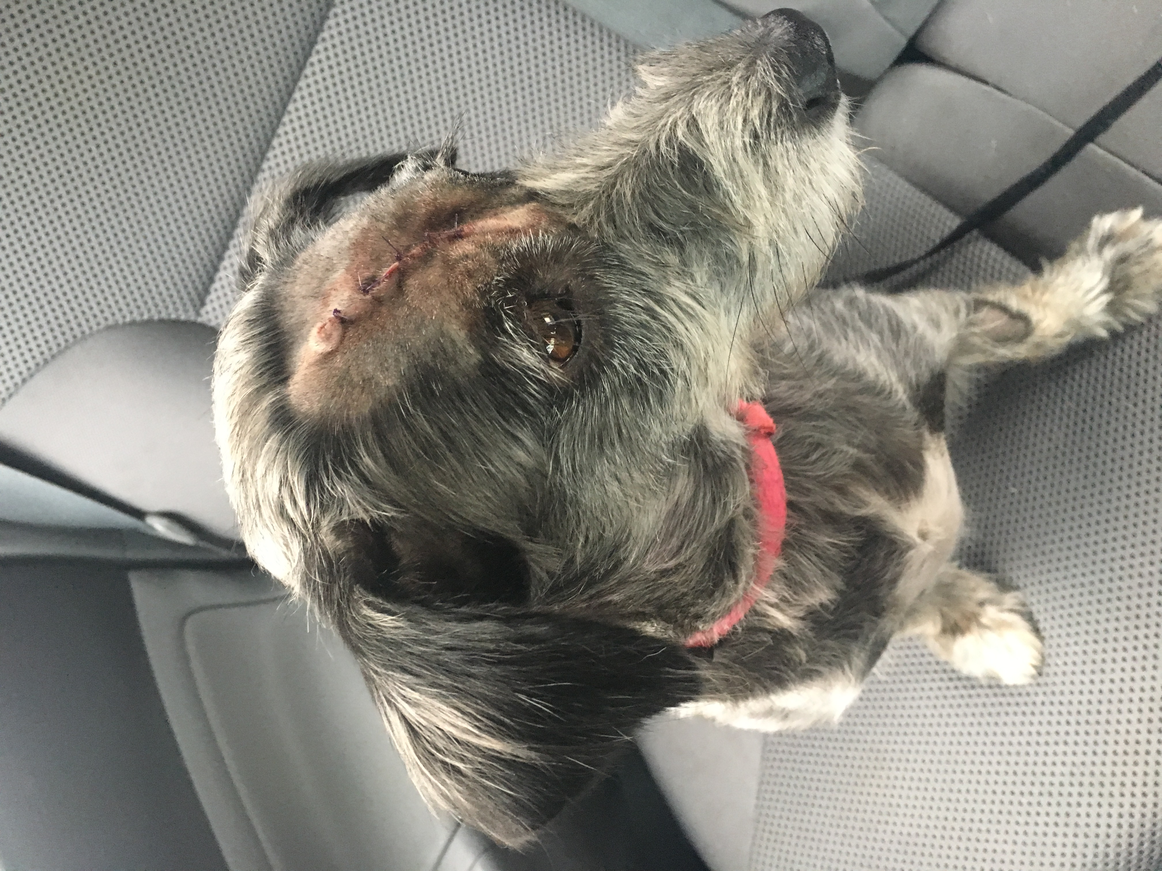 Here she is just after the surgery. It looked real bad, she looked like frankenwinnie!