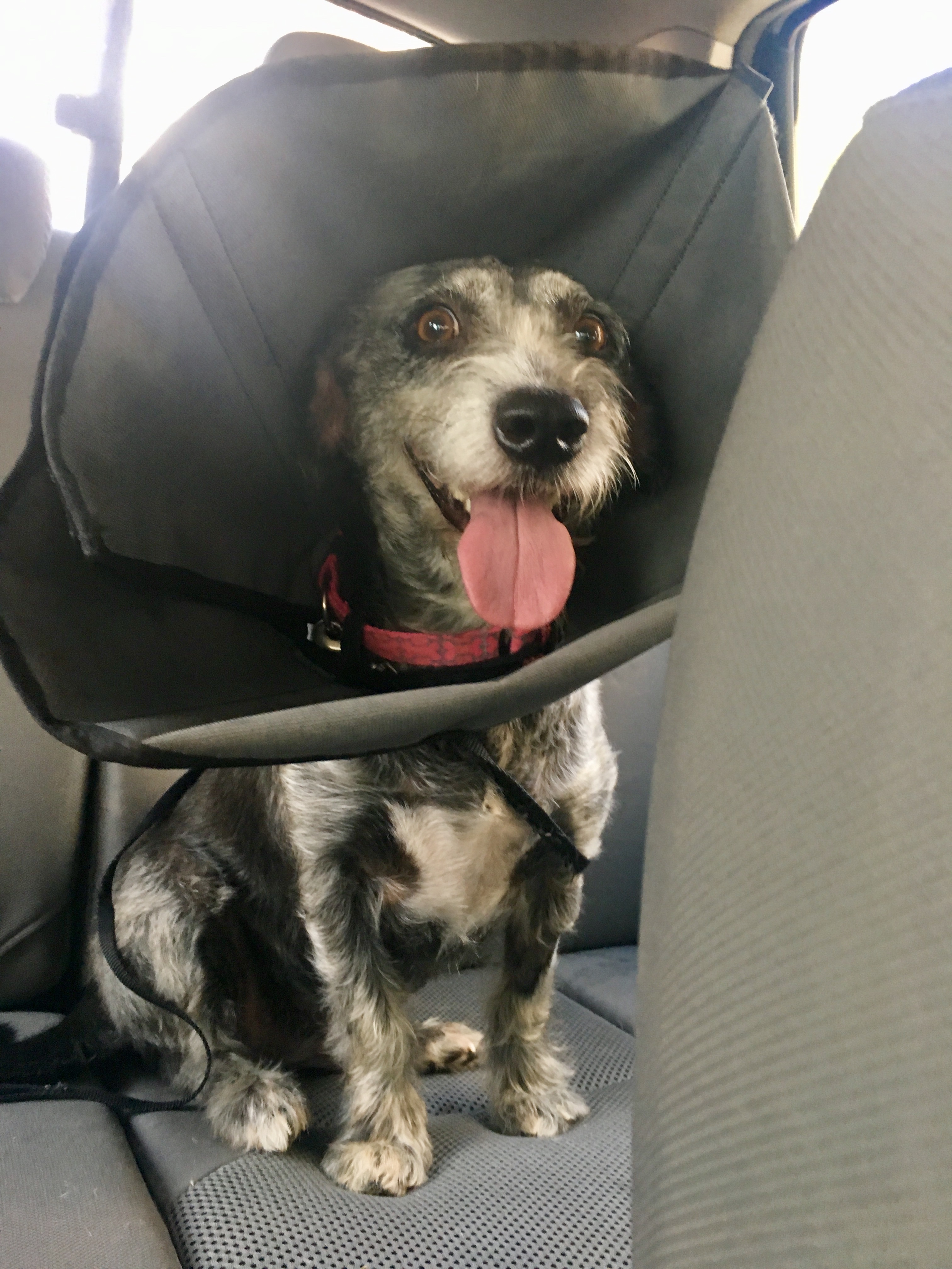 Look at that face! Smiling and positive! She looked so proud wearing that surgery cone, I think she thought it was an accessory, like a hat or something lol!