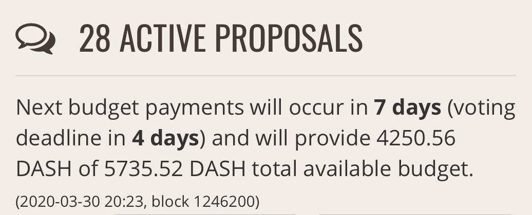 Dash Voting Cycle is coming up - 4 days to go - Please vote !dashpay (62)in #dash • 6 years ago https://www.dashcentral.org/budget https://app.dashnexus.org/proposals/active #digitalcash #cryptocurrency #altcoin