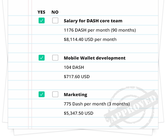 Every member of DASH can propose projects directly to the network. From marketing to development, the propose is taken to a VOTE TRACKER like this: