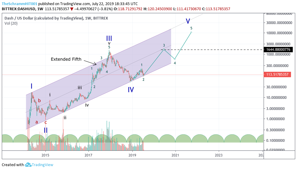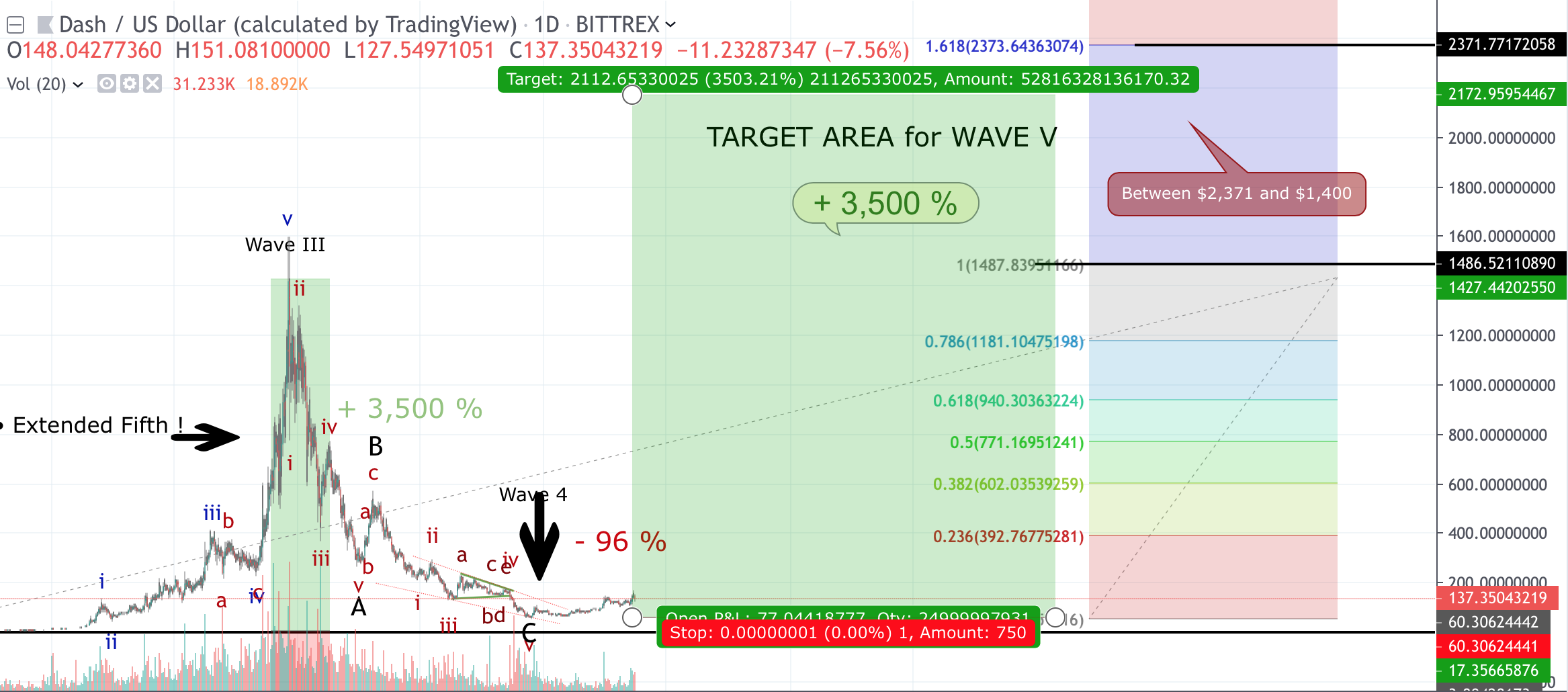 DASH - Full & Complete Elliott Wave Analysis - Fifth Wave is ONGOINGtheschrammhit001 (44)in #dash • 7 years ago DASH between $2,500 and $5,000 per DASH Before 2022. Enjoy ! #digitalcash #crypto #ta #price