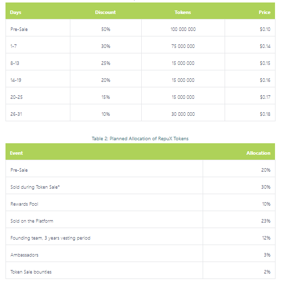 RepuX Limited is creating 500 million RepuX tokens (the “RepuX Tokens”). RepuX is conducting a pre-sale of rights to receive RepuX Tokens upon occurrence of the public launch, which is being made available solely to accredited investors through a Simple Agreement for Future Tokens (the “Pre-Sale”), followed by a more broadly available offering ofRepuX Tokens that will occur once the RepuX Protocol is operational (the “Token Sale”).