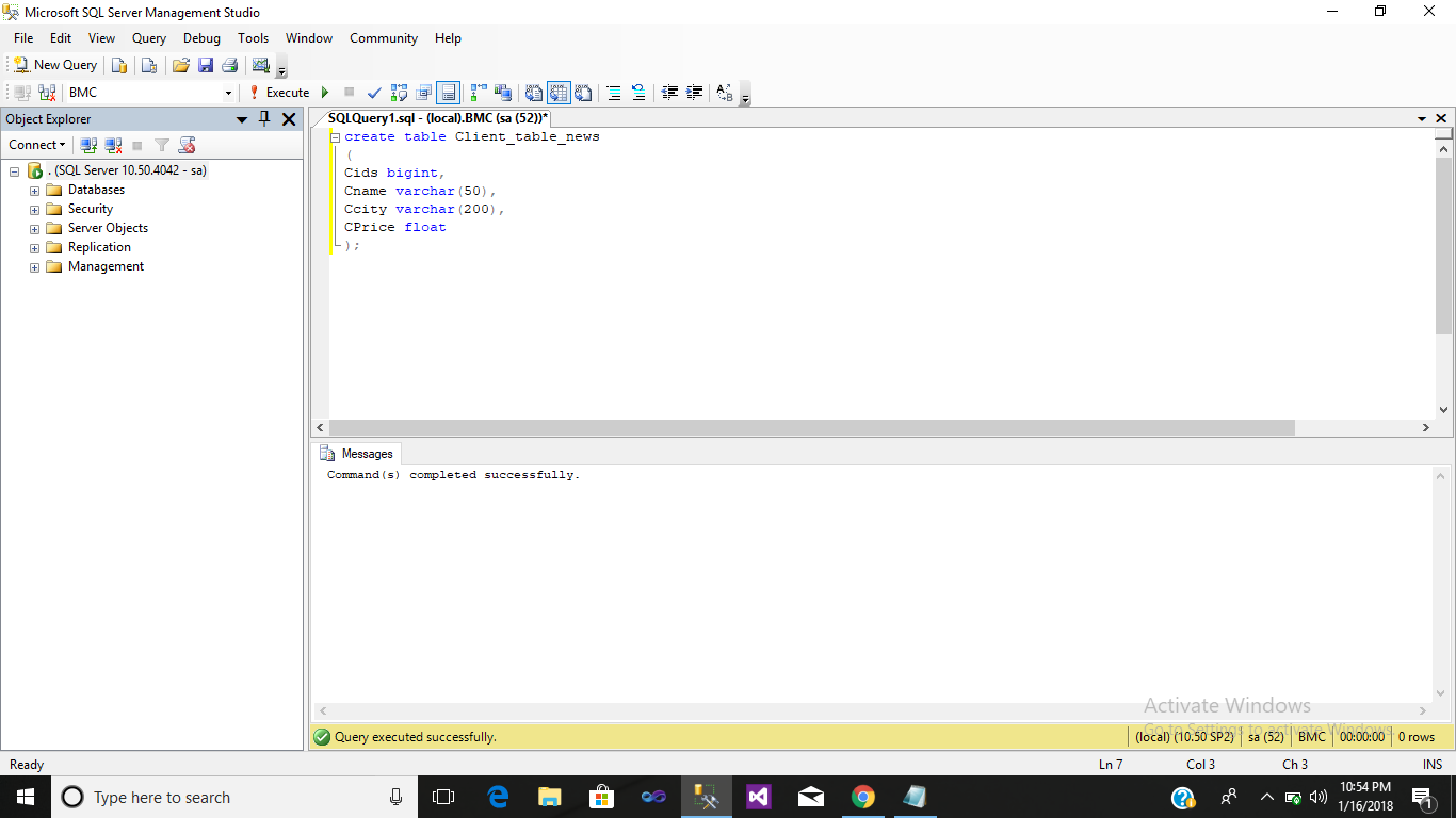 Hello Friend Today In This Blog I Will Show You How To Create Database And Table In Mssql.The CREATE DATABASE statement is used to create a new SQL database.The CREATE TABLE statement is used to create a new SQL table.The CREATE DATABASE statement must run in autocommit mode (the default transaction management mode) and is not allowed in an explicit or implicit transaction.Requires CREATE DATABASE permission in the master database, or requires CREATE ANY DATABASE, or ALTER ANY DATABASE permission.To maintain control over disk use on an instance of SQL Server, permission to create databases is typically limited to a few login accounts.The SQL CREATE DATABASE statement is used to create a new SQL database.Make sure you have the admin privilege before creating any database.A “Database” in SQL Server is a container that holds a group of related objects. In addition to storing the actual data, a Database also stores the structure of how that data is saved (called a Table), and any related helper objects such a Queries (saved ways to look data up). To begin, we’ll create a Database using the graphical interface called the “SQL Server Management Studio”.From the Windows Start Menu, select “Microsoft SQL Server”, and then “SQL Server Management Studio”. Once the Management Studio starts, right click the Databases folder and select new Database. Enter a name in the “Database name” text box. For this example, well use the name “Test”.As you the type the database name in, the Logical Name for the file types Data and Log will automatically fill in as well. The “Data” file is where the actual data is saved on the hard drive. The “Log” file keeps track of any changes to that data. Click OK.Now that the Database is created, a structure to hold the actual data is needed. This structure is called a Table. Think of Tables as containing Columns and Rows, like a spreadsheet.The CREATE TABLE statement is used to create a new table in a database.