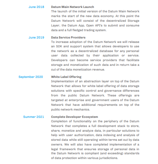 Datum is a decentralized global scale database with blockchain characteristics that allows anyone to securely store structured data. Datum returns data ownership to individuals and lets them monetize their data on their own terms. This lays the foundation for a new marketplace powered by a new asset class. Datum turns structured data into a tradeable commodity and is building the $120 Bln Data Economy.