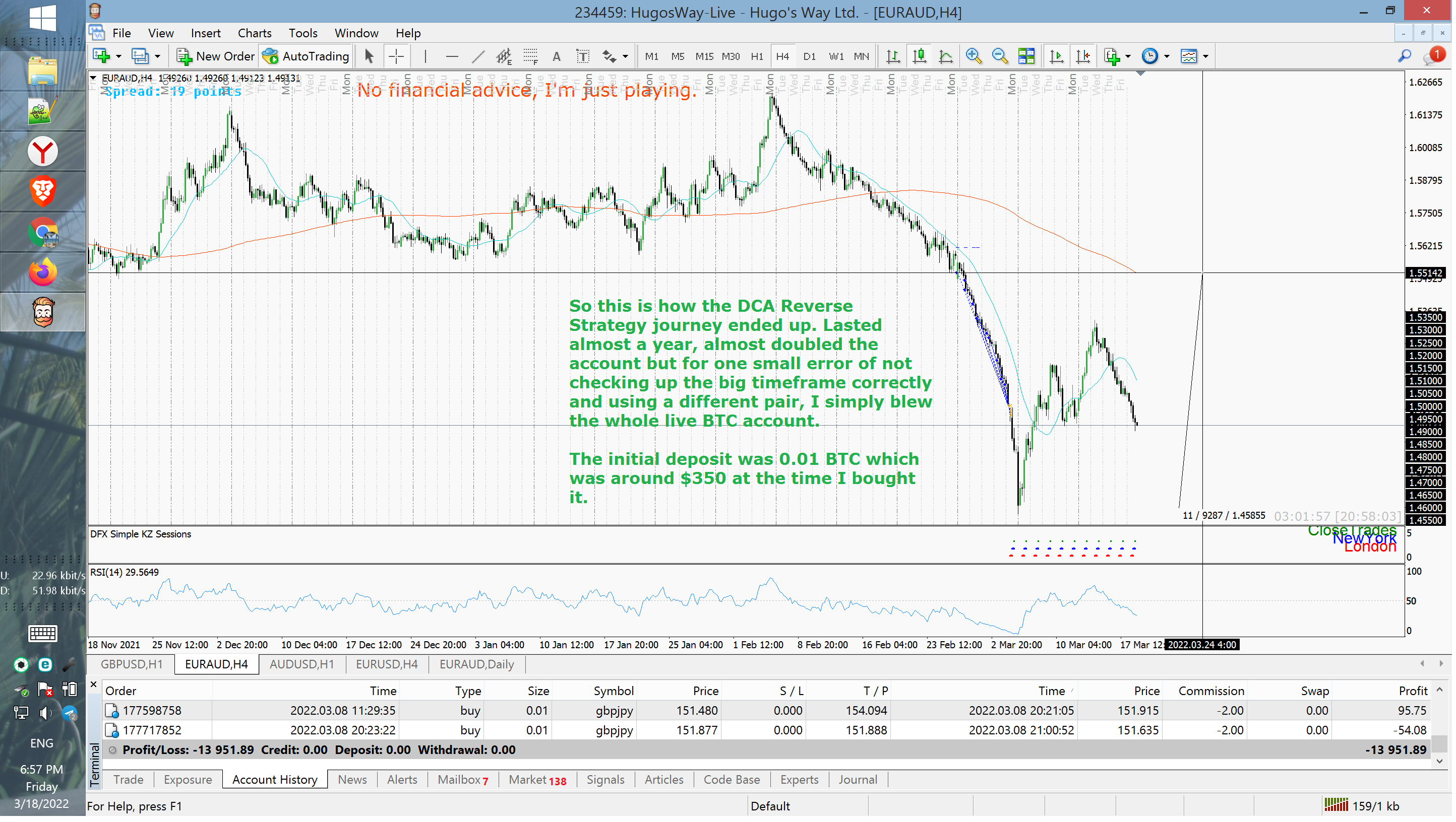 It's interesting that even before I started testing it on many markets, even crypto, building different scripts and bots and *indicators, read other people's experiences and studies that it's actually a failure strategy, I have still had to find out the hard way. So after over 2 years in total and especially this 0.01 BTC loss after a year of trading, I feel like I don't need to test it anymore and can comfortably just ignore it and focus on a strict strategy with tight and stable SL.