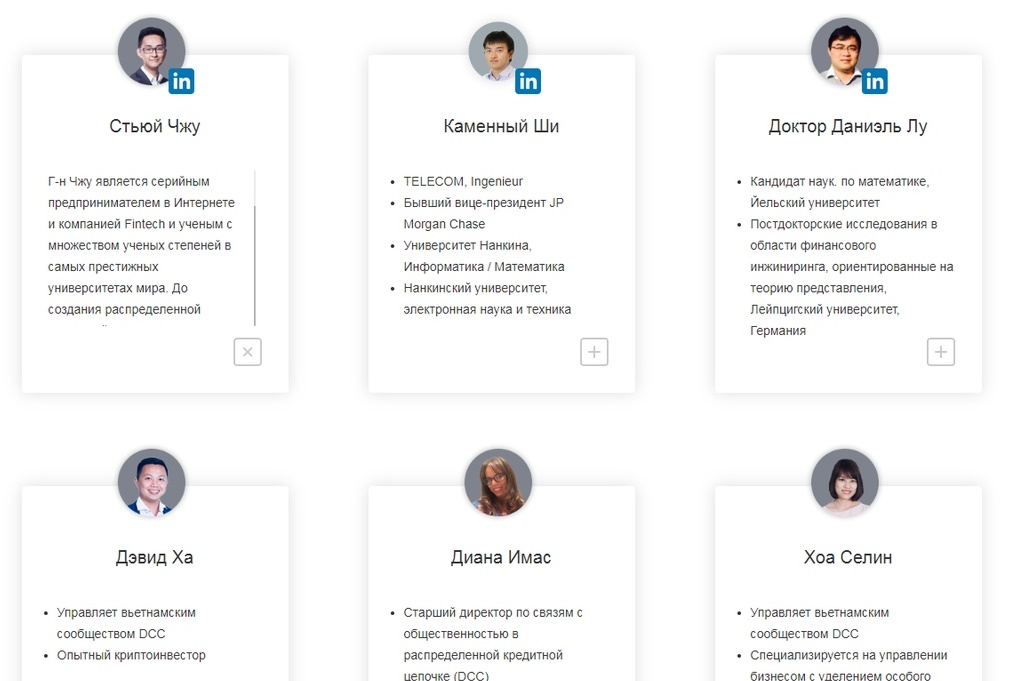 При ознакомлении и инвестировании своих средств я в первую очередь смотрю на команду,которая реализовывает свою идею. У команды DCC в этом плане все хорошо,так как собраны отличные специалисты из разных сфер деятельности,которые достаточно профессионально заходят на рынок финансов. Ознакомиться с командой вы сможете на иф официальном сайте