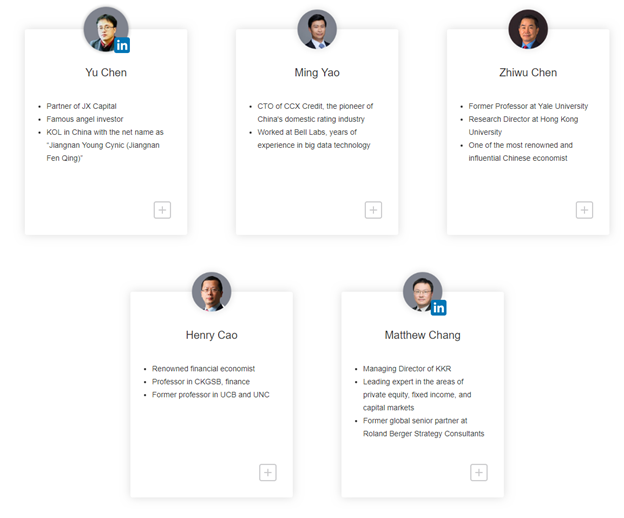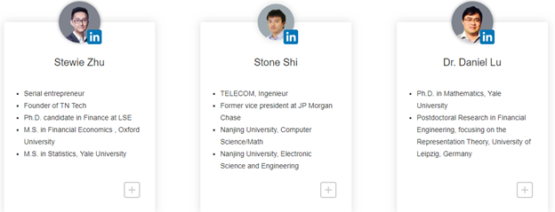 The core team is really strong. They are highly educated individuals with relevant experience in banking business and finance. Stewle Zhu is the founder of Distributed Credit Chain. He was a CEO of TN tech that's like a leading financial technology company in China. It was sold in three years to a public company, it did very well at TN Tech. Mr. Zhu led a team to develop internet-based credit systems for over a dozen of trust with multi billion USD annual loan facilitation amounts. Stone Shi was the former vice president at JP Morgan Chase. And the last gentleman is Dr. Daniel Lu. He's the chief innovative officer, he has two PhDs – the first one is the mathematics PhD from Yale University as well as a financial engineering PhD from Leipzig University.