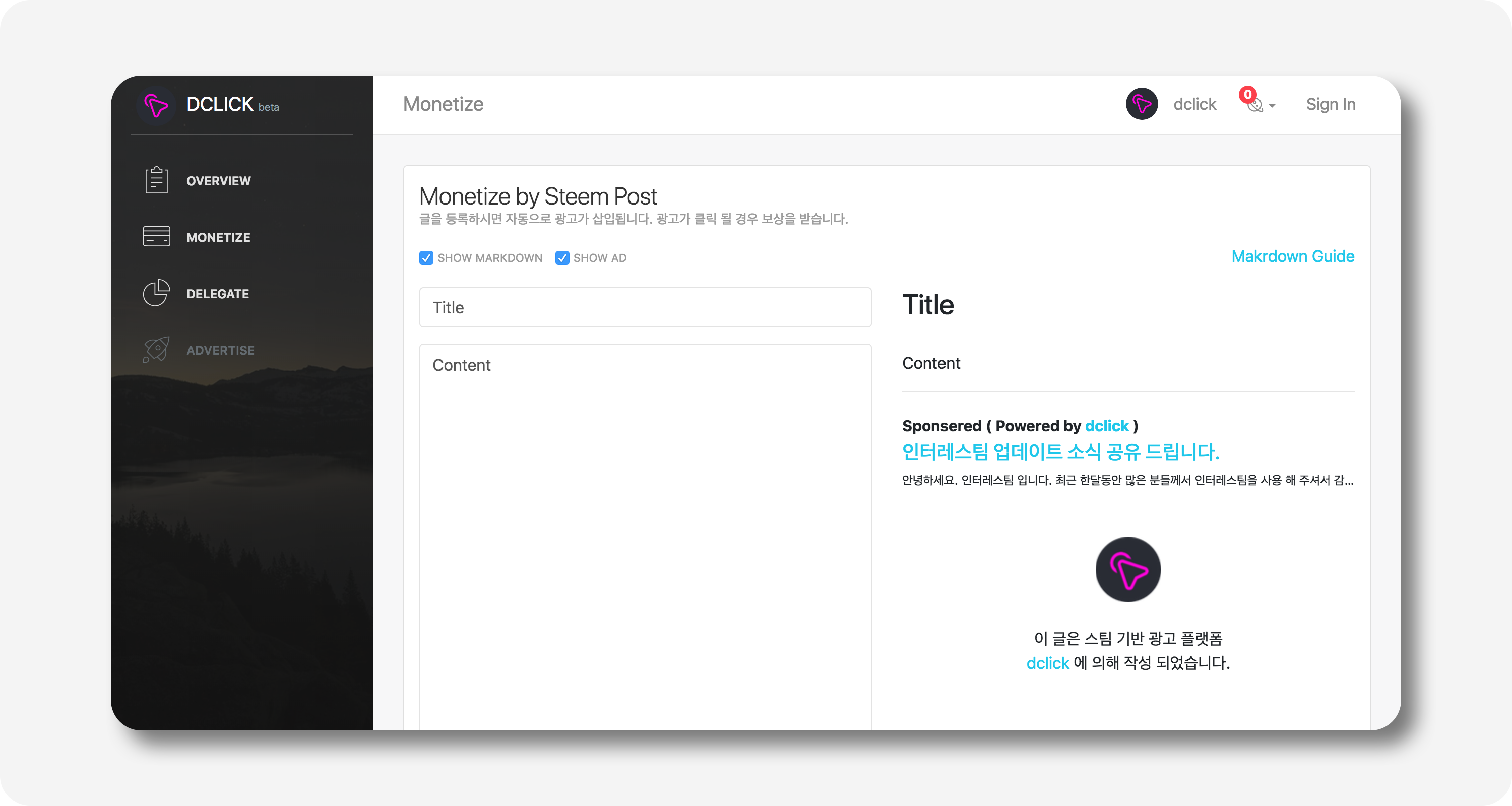 오 dclick.io 가 steemconnect 통한 광고주와 컨텐츠 제공자를 직접 연결하여 보상하나 보군요. 관심 가져볼 필요있겠네요.