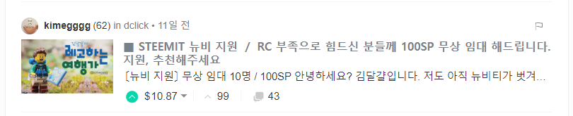 ■ STEEMIT 뉴비 지원 / RC 부족으로 힘드신 분들께 100SP 무상 임대(7명 완료) 해드립니다. 지원, 추천해주세요