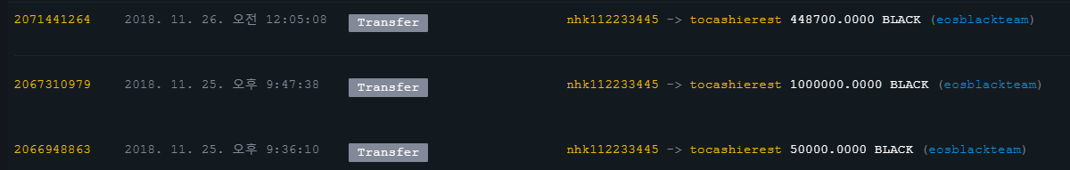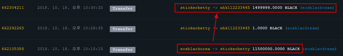 eosblackorea로 추가 발행된 Black은 주인이 몇번 바뀌고