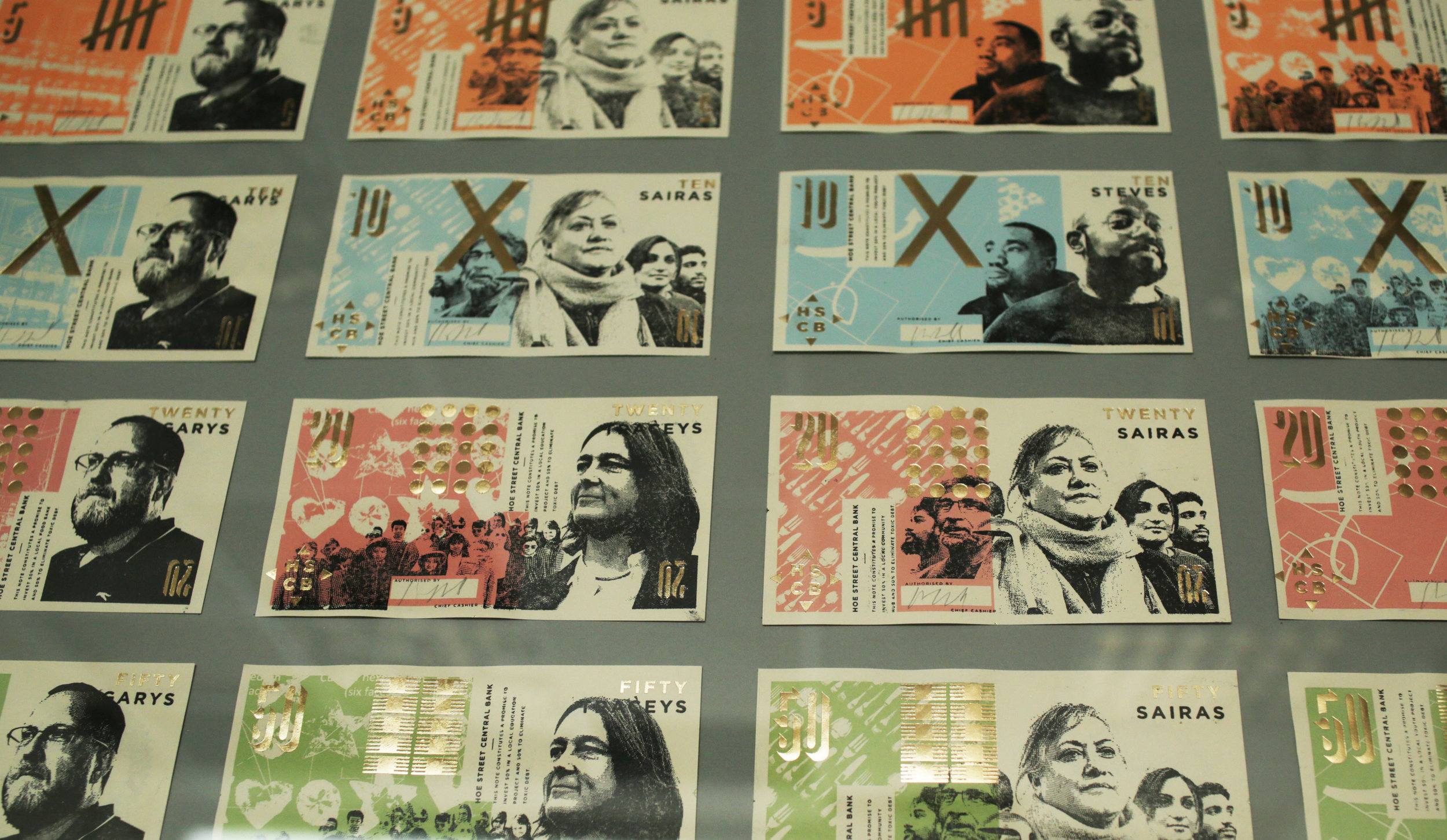 The organisation behind it, Hoe Street Central Bank (HSCB, riffing off the Hong Kong Shanghai Bank, HSBC), sells these works of art, which feature members of the local community.