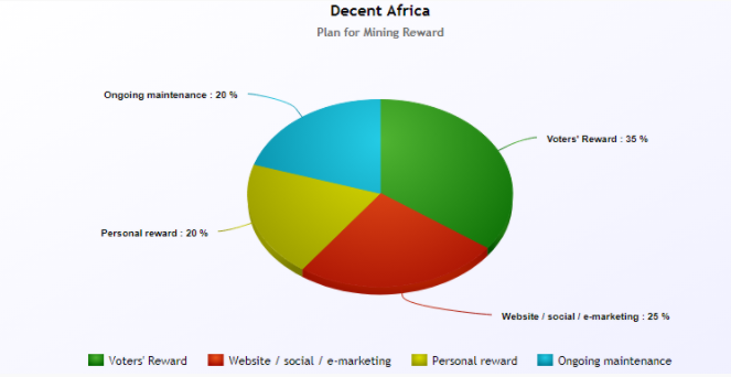 35 % of our mining reward will be sent to DECENT AFRICA voters periodically - twice per month. Each voters will get the reward according to the weight of his vote.