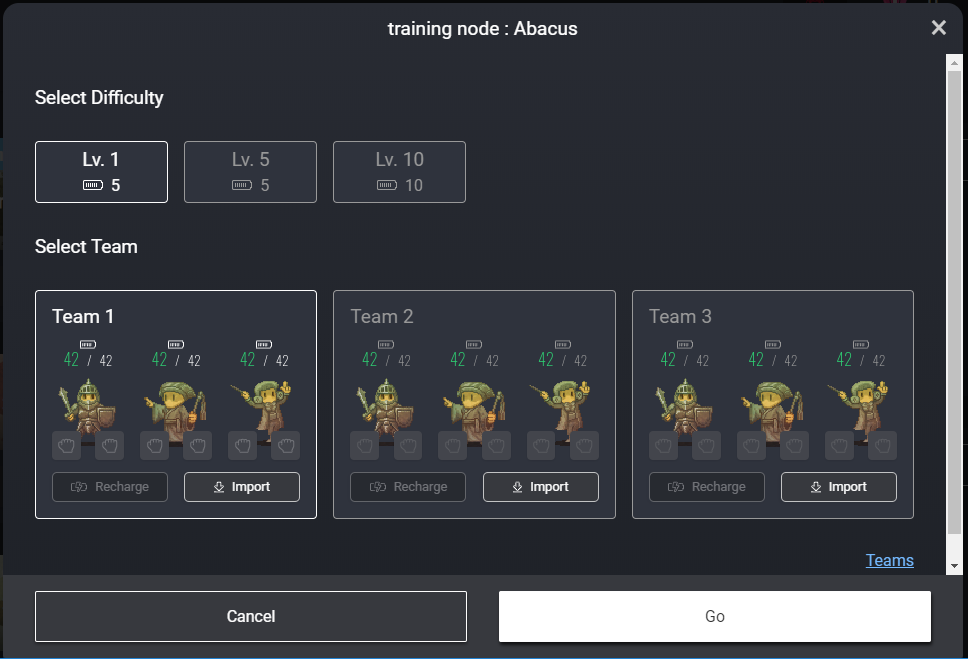 I was not able to record the inifor the game, but if I remember it correctly, I was asked to select or build my heroes/team. After doing that, I tried a training battle. Here's the page that displayed after logging in with my Ethereum account.