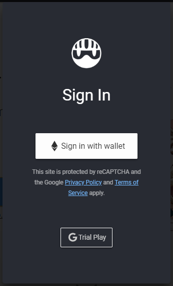 When you click the "Play Game" button, it will prompt you to sign-in either with your Ethereum wallet or Google account for trial play. I chose to to sign-in with my my Ethereum wallet.