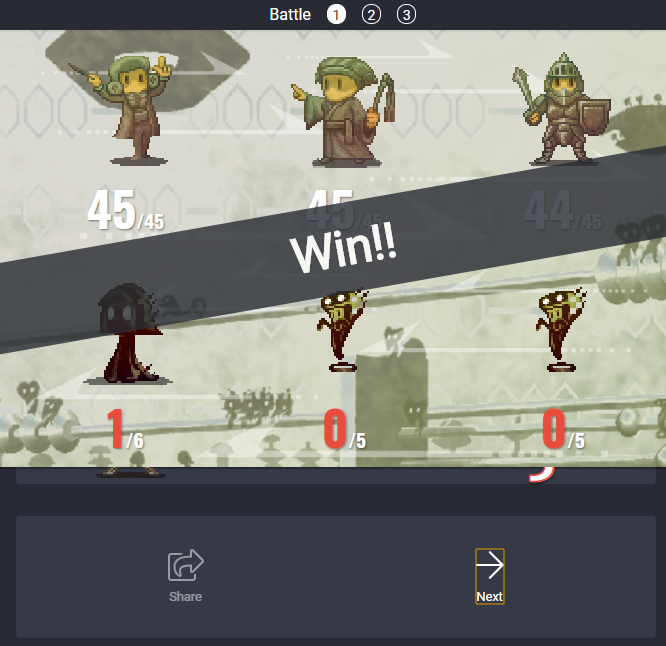 There are three battles, I just clicked on Next at the conclusion of each battle.