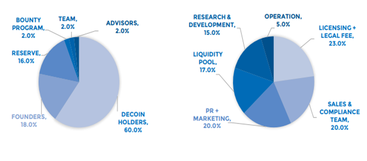 - Revenue-sharing exchange platform: DECOIN holders gain from transaction fees and the daily volume on the d-TEP. Trading revenue include: spreads, commissions, aggregation, CFD’S and margin interest.