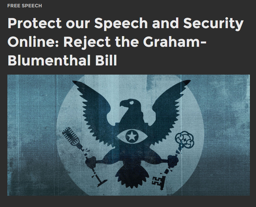 That’s what the Senate Judiciary Committee has proposed and hopes to pass into law. The so-called EARN IT bill, sponsored by Senators Lindsey Graham (R-SC) and Richard Blumenthal (D-CT), will strip Section 230 protections away from any website that doesn’t follow a list of “best practices,” meaning those sites can be sued into bankruptcy. The “best practices” list will be created by a government commission, headed by Attorney General Barr, who has made it very clear he would like to ban encryption, and guarantee law enforcement “legal access” to any digital message.