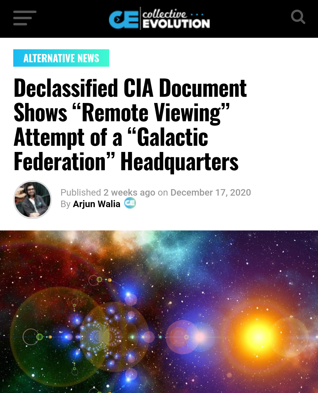 One last item of note is a recent article by Collective Evolution on a remote viewing session by the CIA in 1988. The CIA was asking the viewer to search for the Galactic Federation. The link for the article is posted below, and also ties in the Galactic Federation claim by