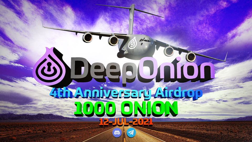 4th DeepOnion cryptocurrency Anniversary Airdrop will happen at 18 July 2021 with 1000 ONION reward.