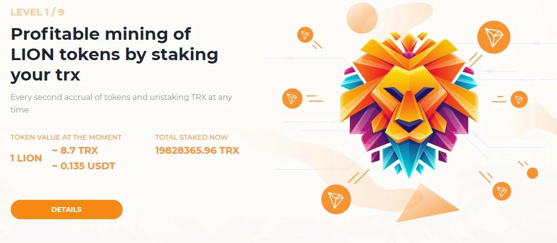 Profitable mining of LION tokens by staking your TRX