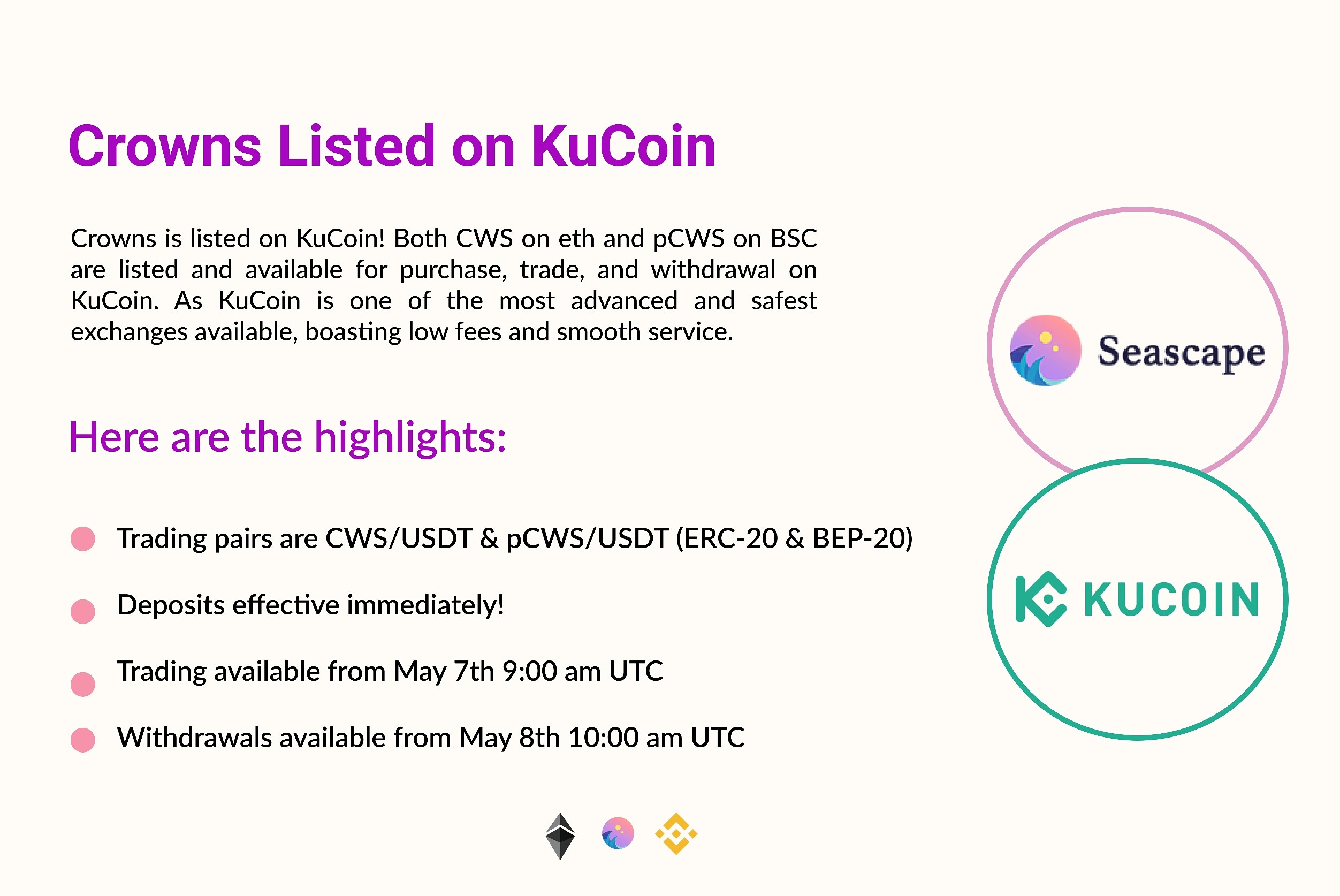 Crowns (CWS) is now available on KuCoin with the available trading pair being $CWS/$USDT.
