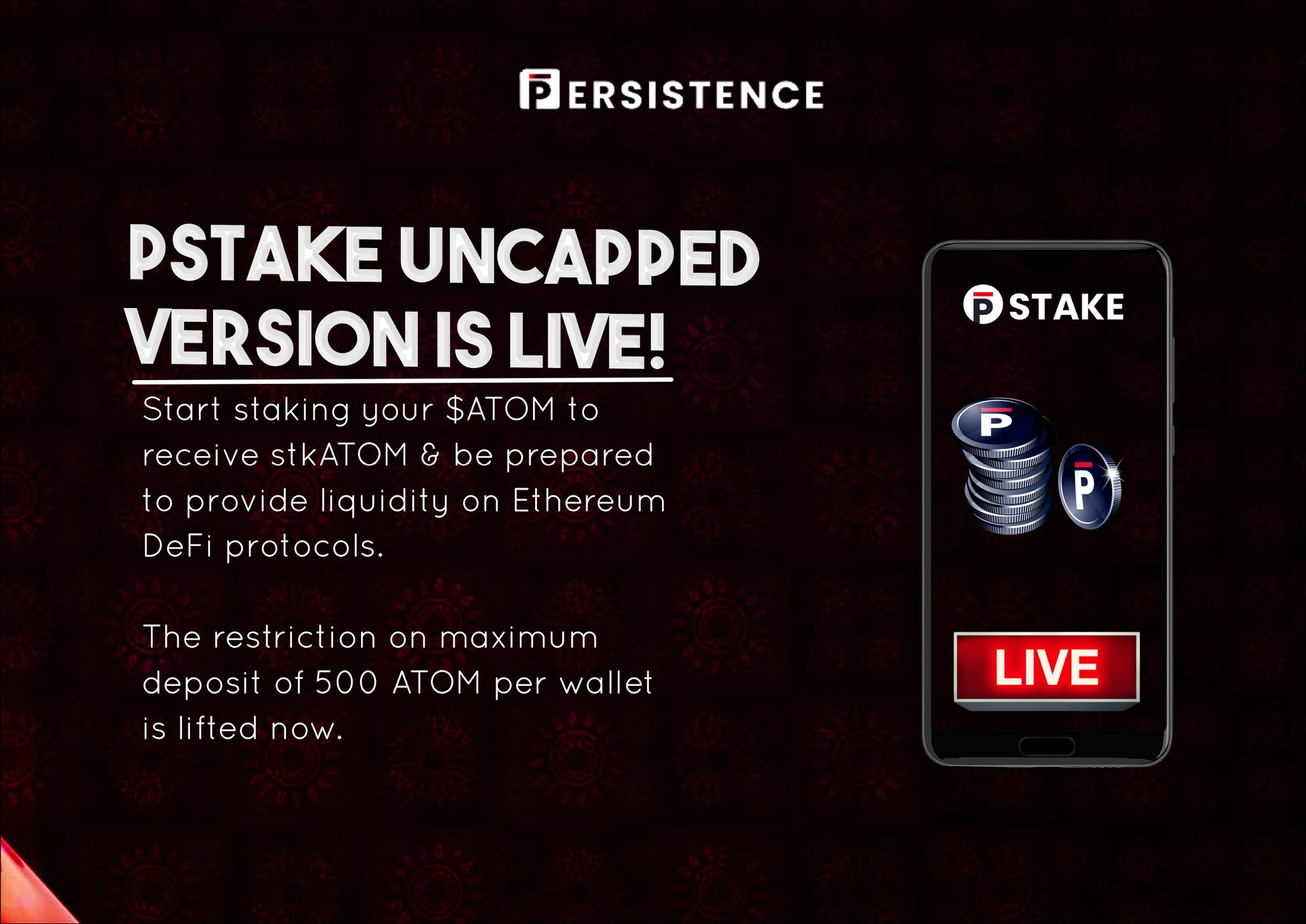 Still, on Pstake, the Uncapped version of $ATOM has now been released. This is an exciting development as users can now deploy all their $ATOM on $Pstake. They will continue to get DeFi yields on the Ethereum network by staking.