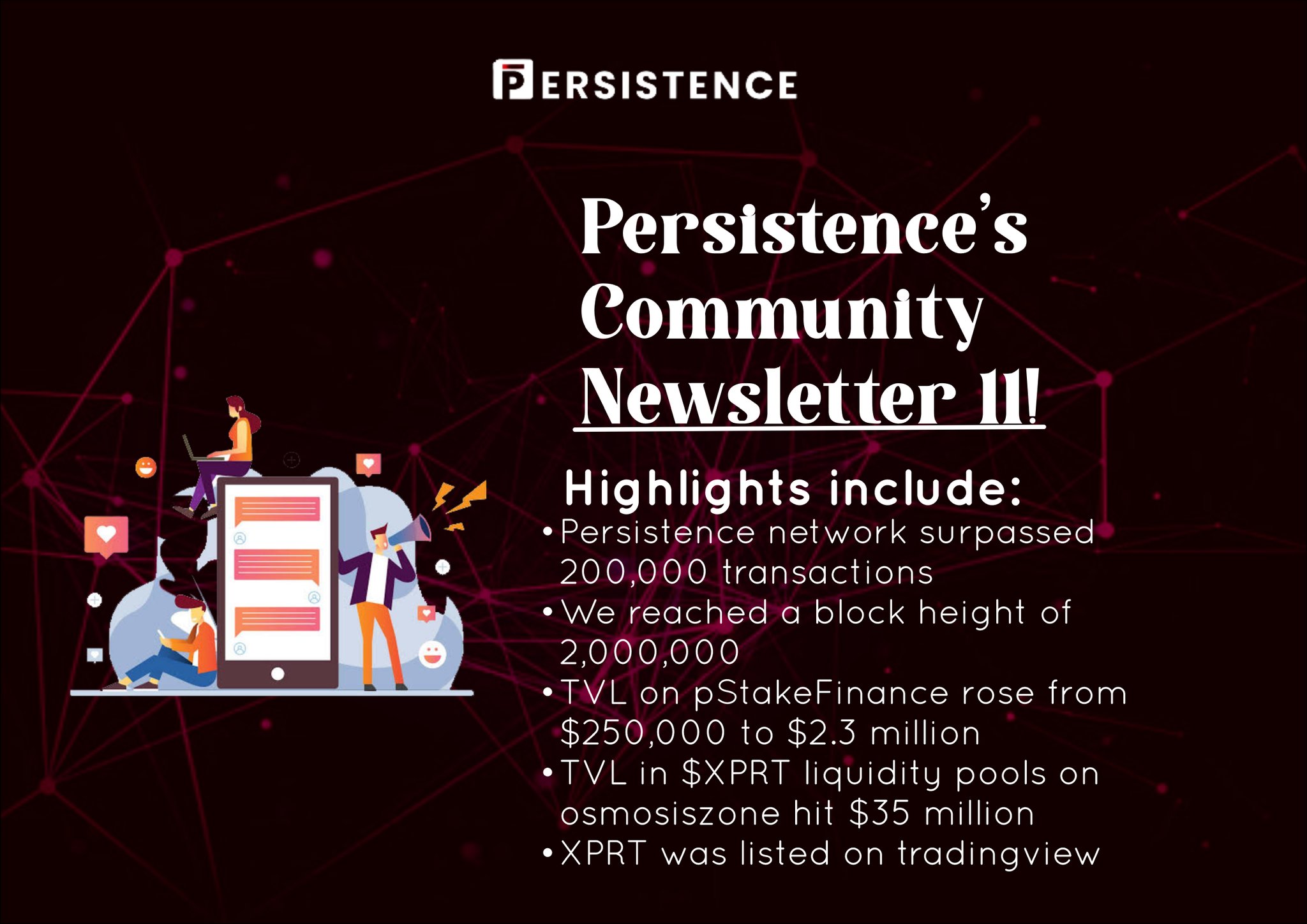 Over 200,000 transactions were recorded on the persistence network with about 13,500 of its native token’s wallets, $XPRT created. Recall that PSTAKE is one of Persistence's major programs. So August 2021 drove a 10x increase in the Total value locked, TVL on PSTAKE; Statistically, from $250,000 to $2.30million between 1st and 29th, August.