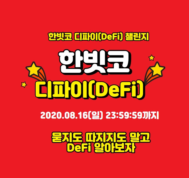 한빗코와 함께 디파이(DeFi)도 배우고, 보상도 받는 재밌는 디파이(DeFi) 챌린지를 시작해보는거 기대해보아요~~