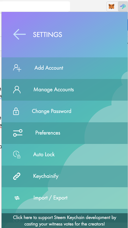 To input these keys in Steem Keychain, after installation go to settings and click on Manage Account tab which will have the provision to input your various keys of steem into the Steem Keychain wallet.