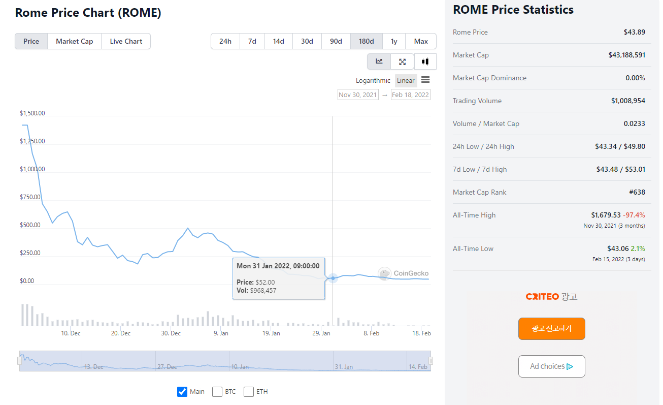 The market cap of ROME tokens, which was launched two months ago, is $42.84 million. 514 billion. How