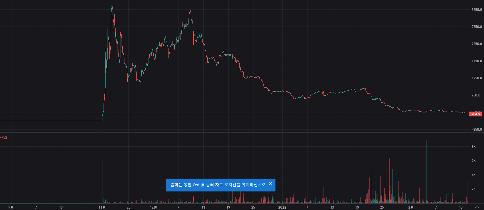 klaytn's Kronos Dao daily chart (pumping from $80 to $3200 initially)